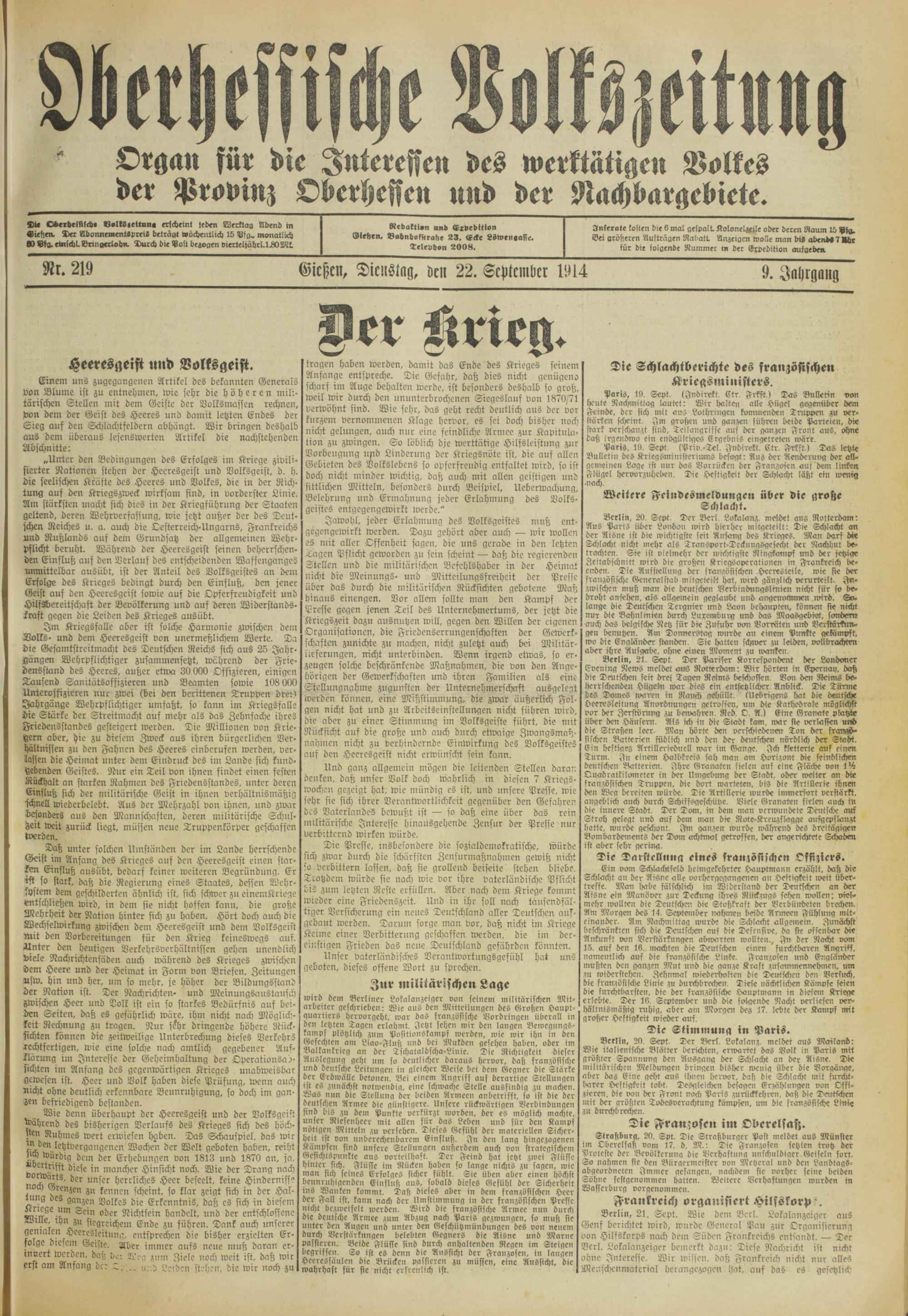 Oberhessische Volkszeitung. 1914-1923