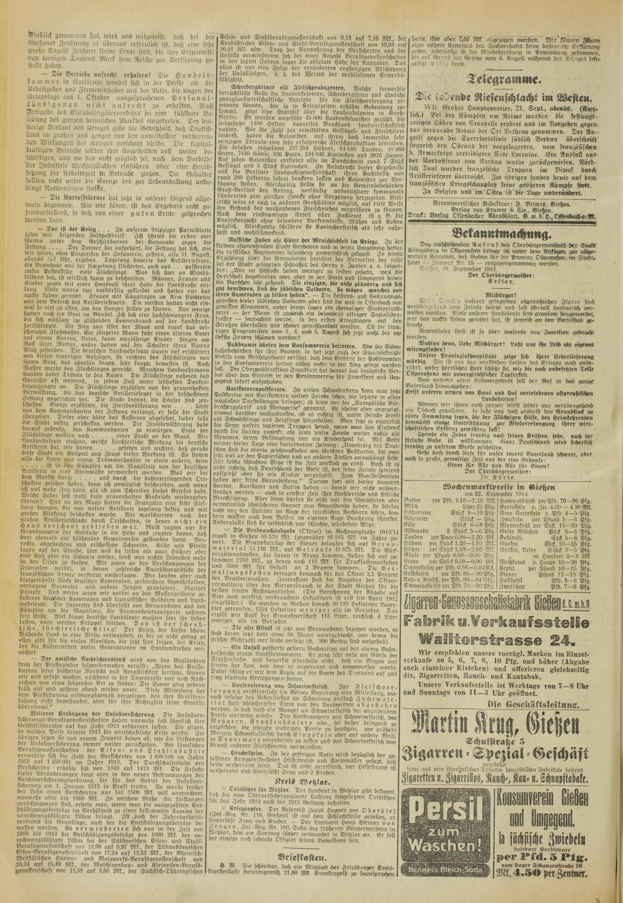 Oberhessische Volkszeitung. 1914-1923