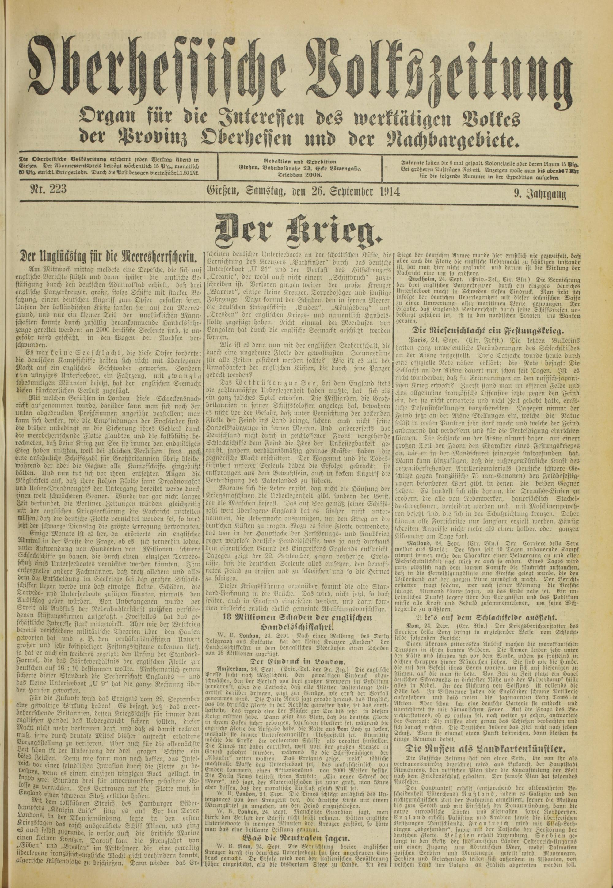 Oberhessische Volkszeitung. 1914-1923