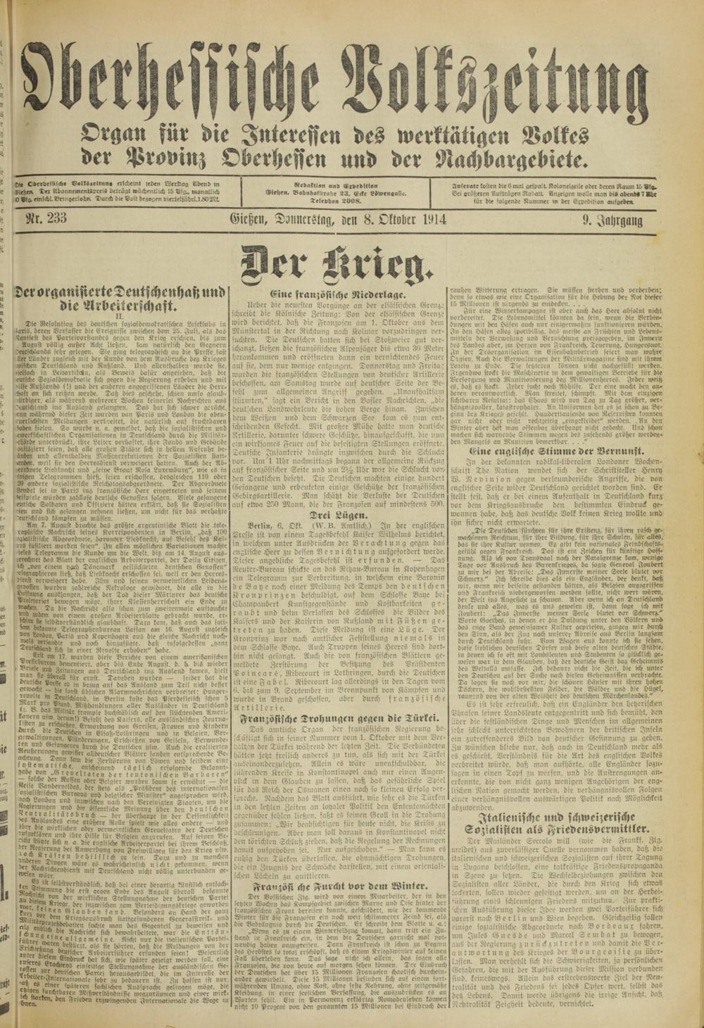 Oberhessische Volkszeitung. 1914-1923