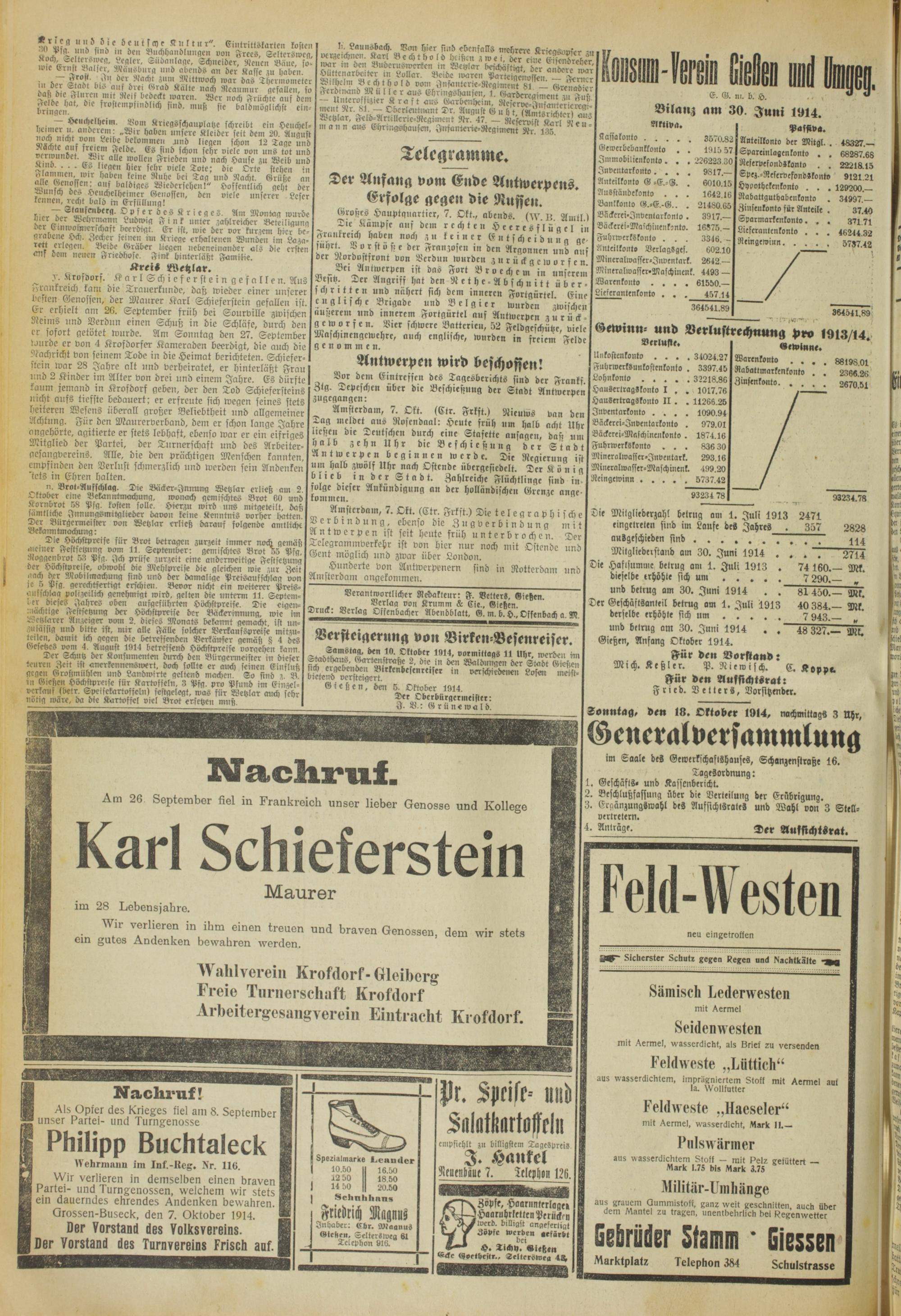 Oberhessische Volkszeitung. 1914-1923