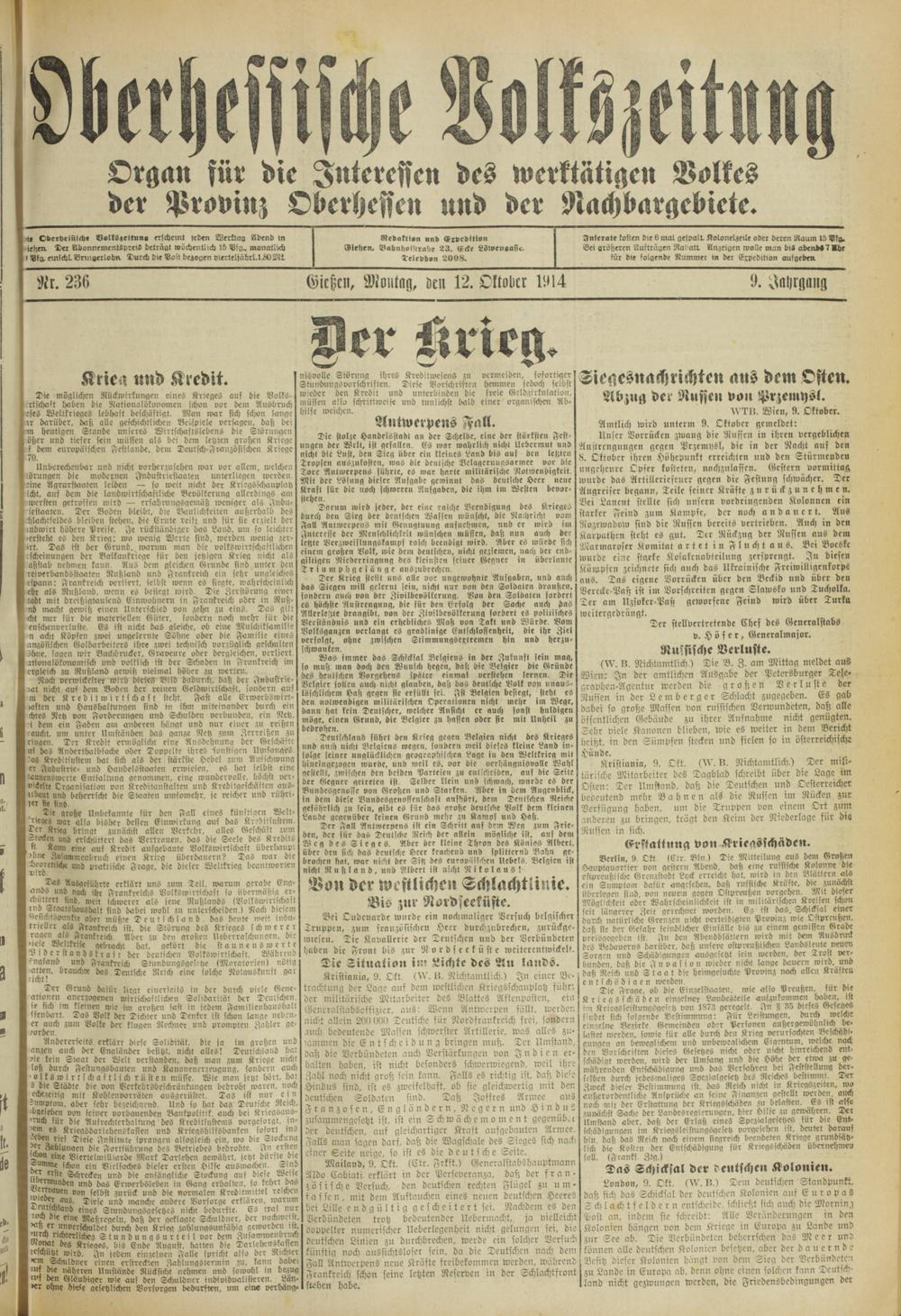 Oberhessische Volkszeitung. 1914-1923