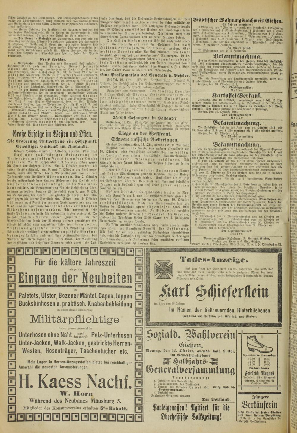 Oberhessische Volkszeitung. 1914-1923