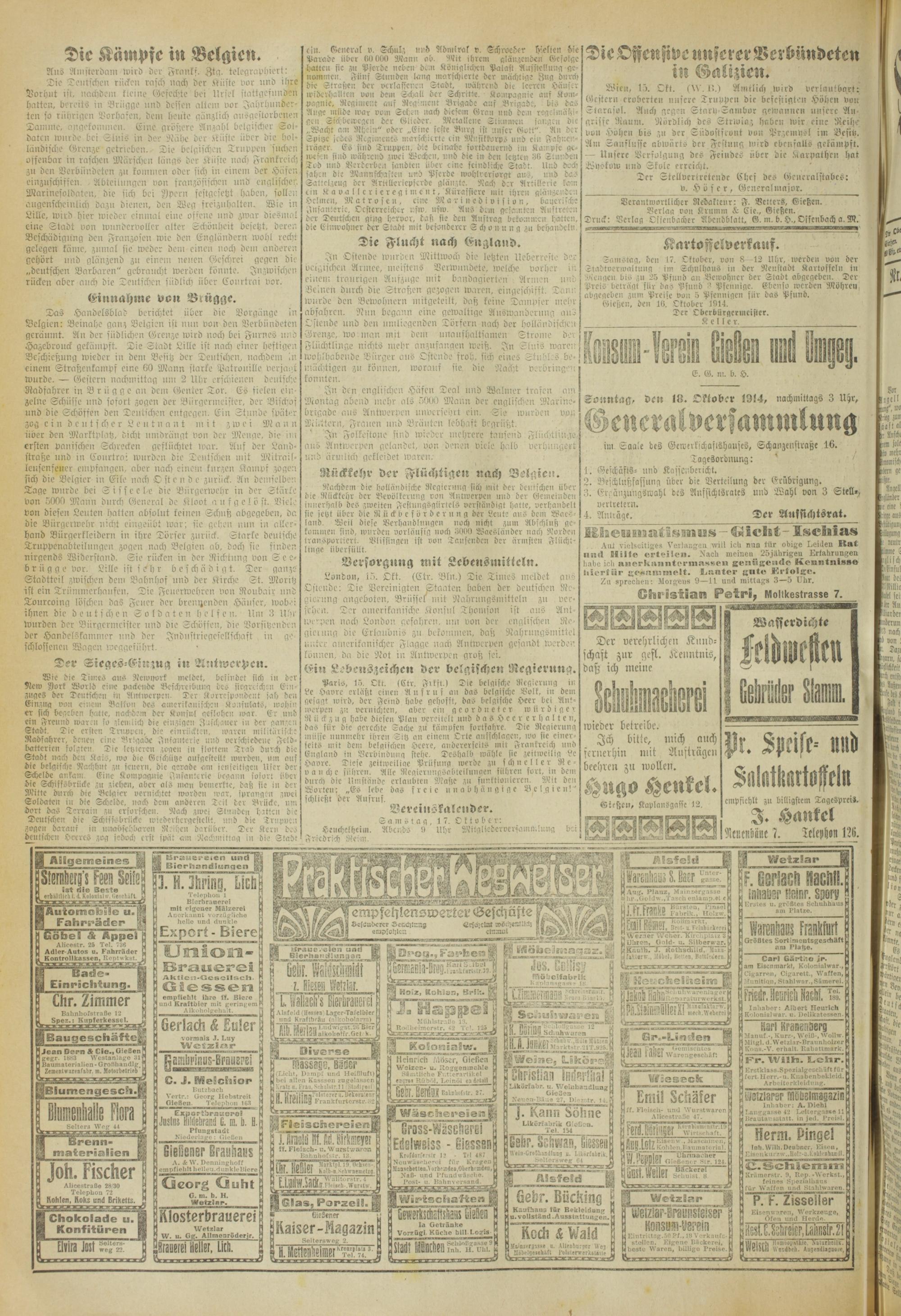 Oberhessische Volkszeitung. 1914-1923