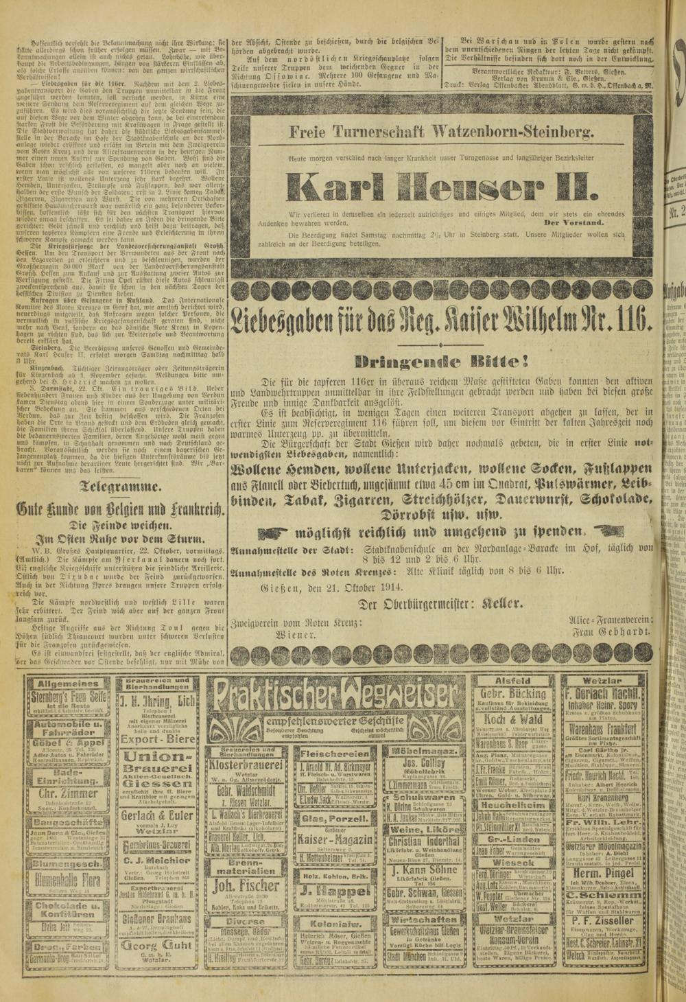 Oberhessische Volkszeitung. 1914-1923