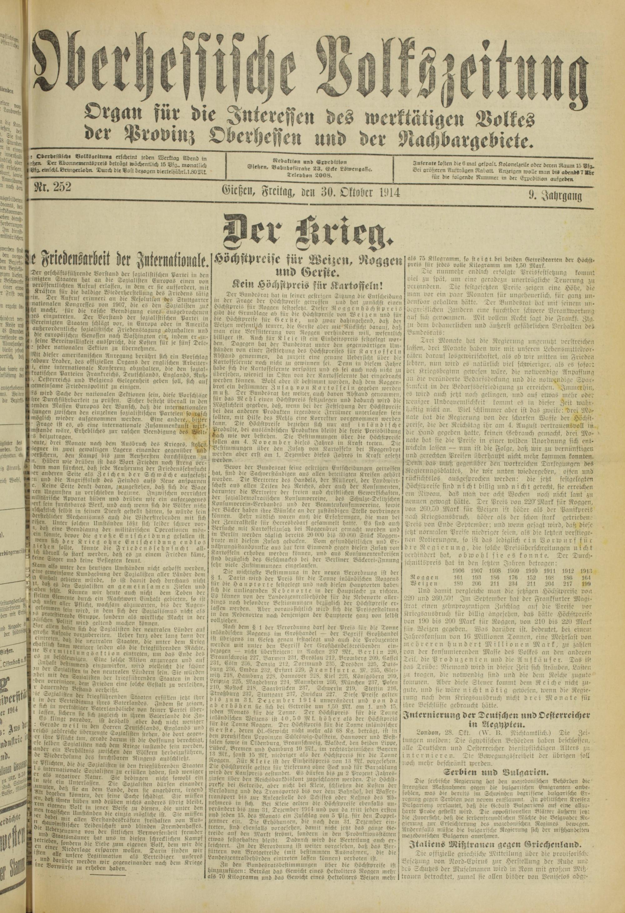 Oberhessische Volkszeitung. 1914-1923