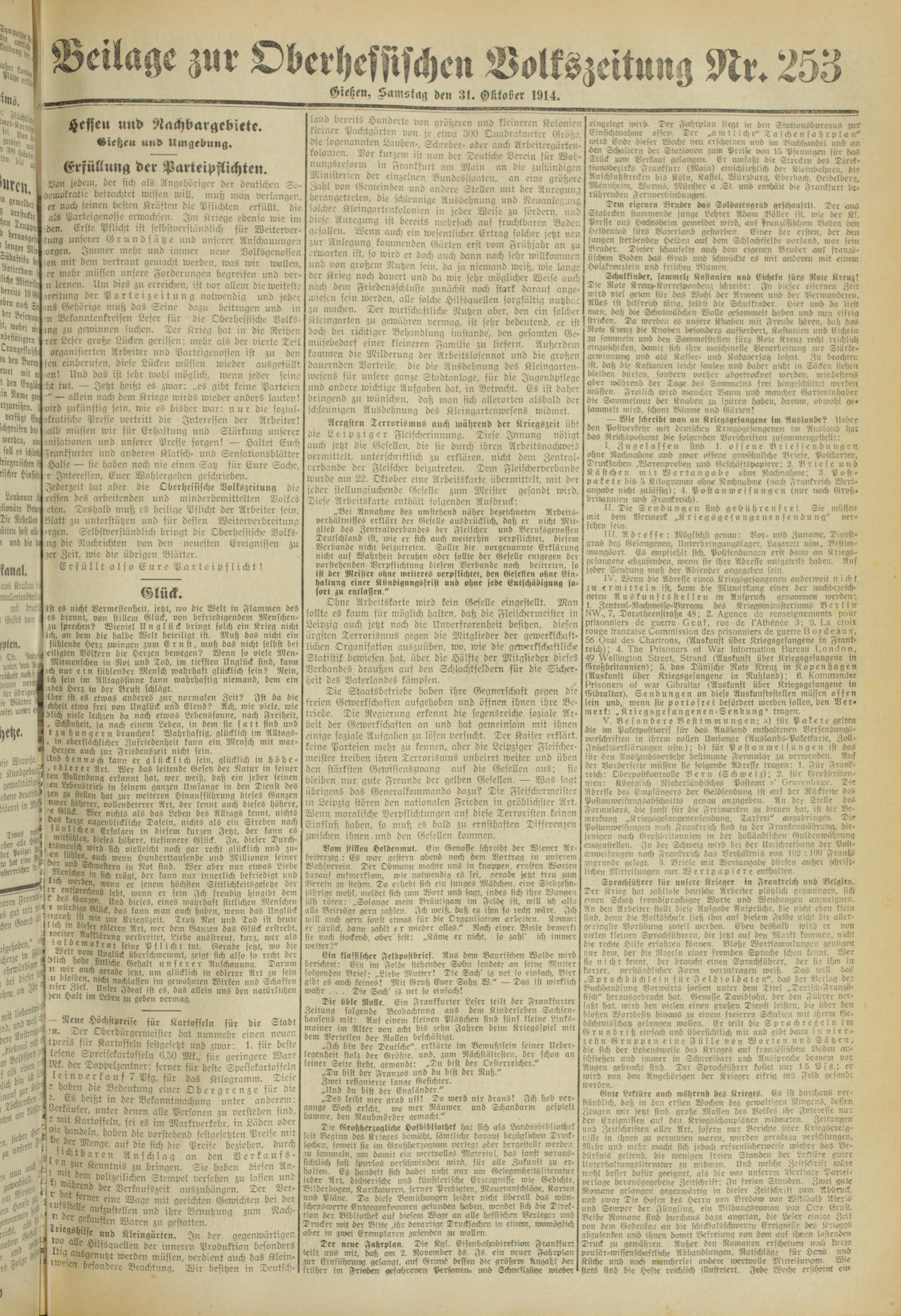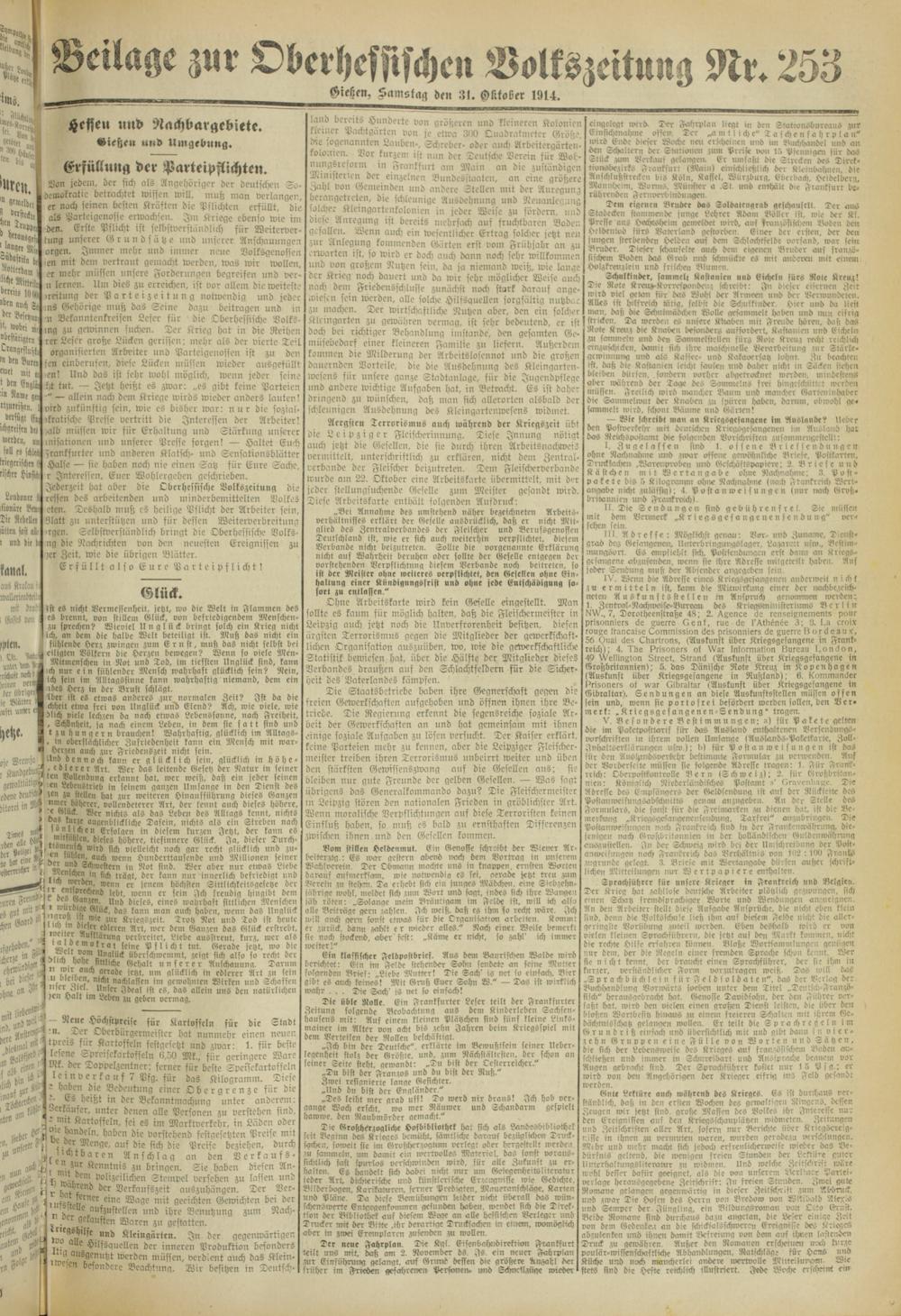 Oberhessische Volkszeitung. 1914-1923