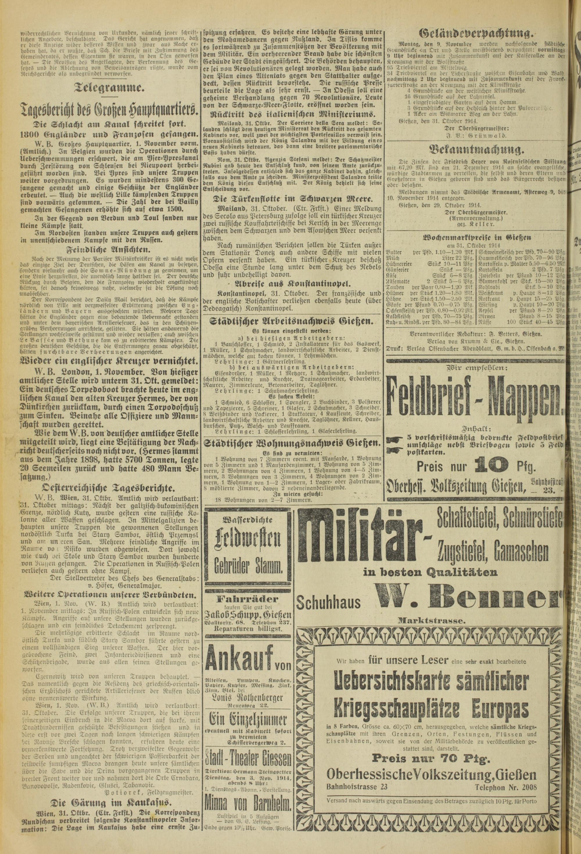 Oberhessische Volkszeitung. 1914-1923
