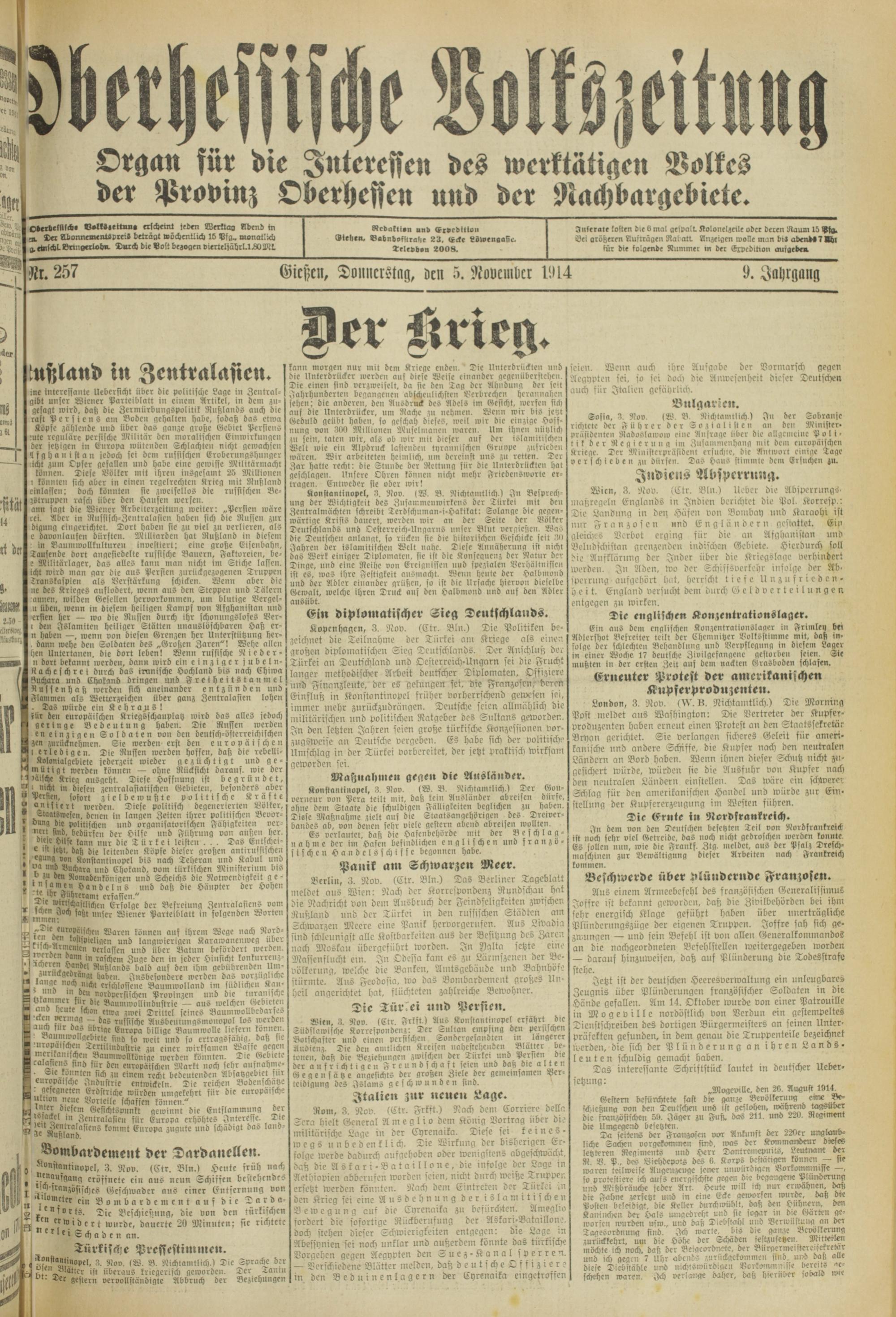 Oberhessische Volkszeitung. 1914-1923