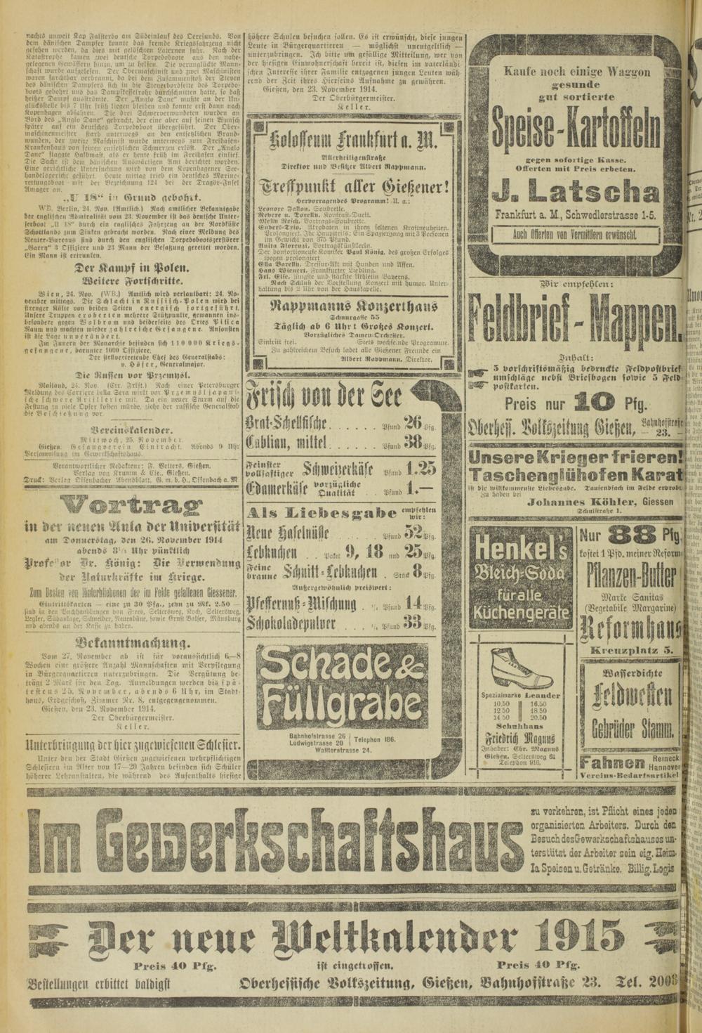 Oberhessische Volkszeitung. 1914-1923