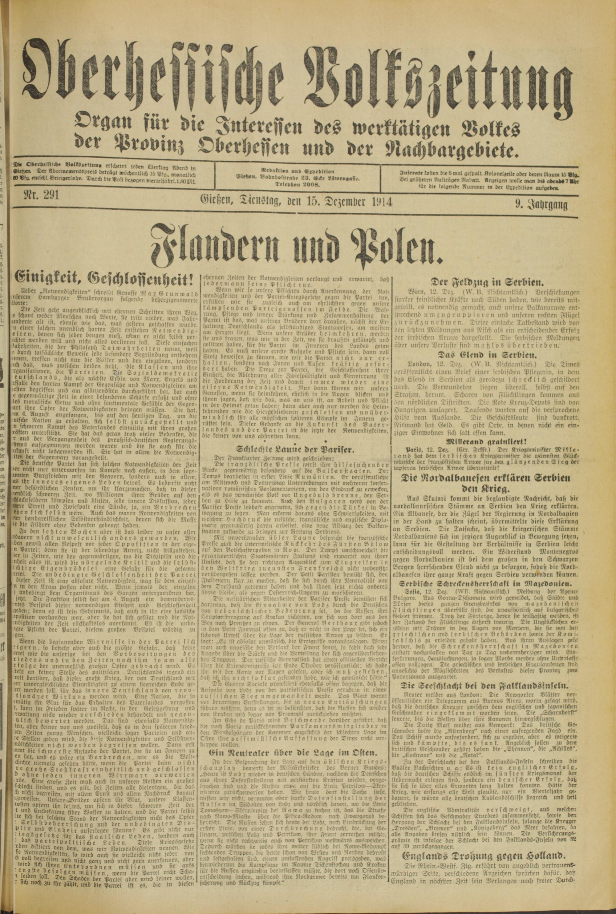 Oberhessische Volkszeitung. 1914-1923