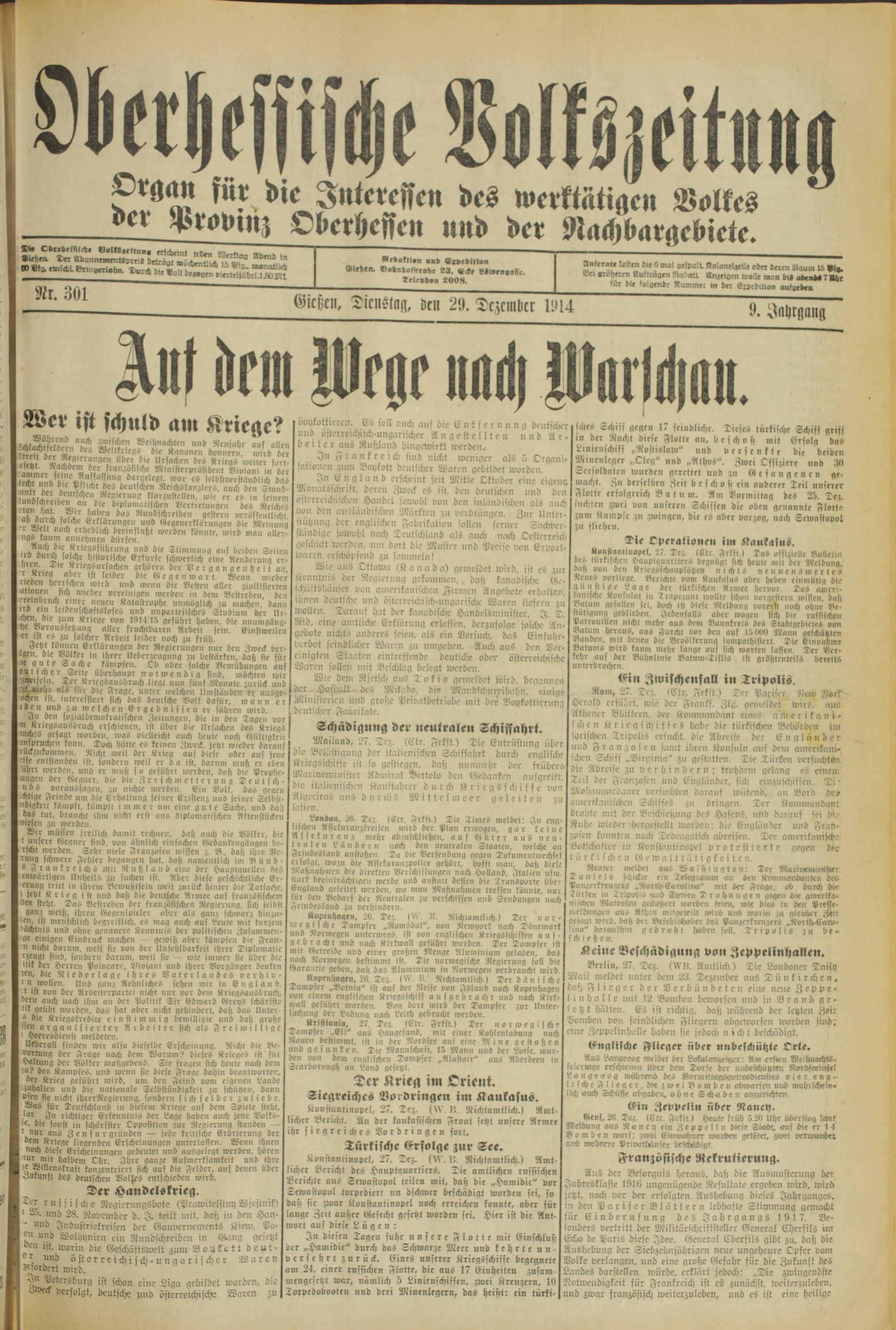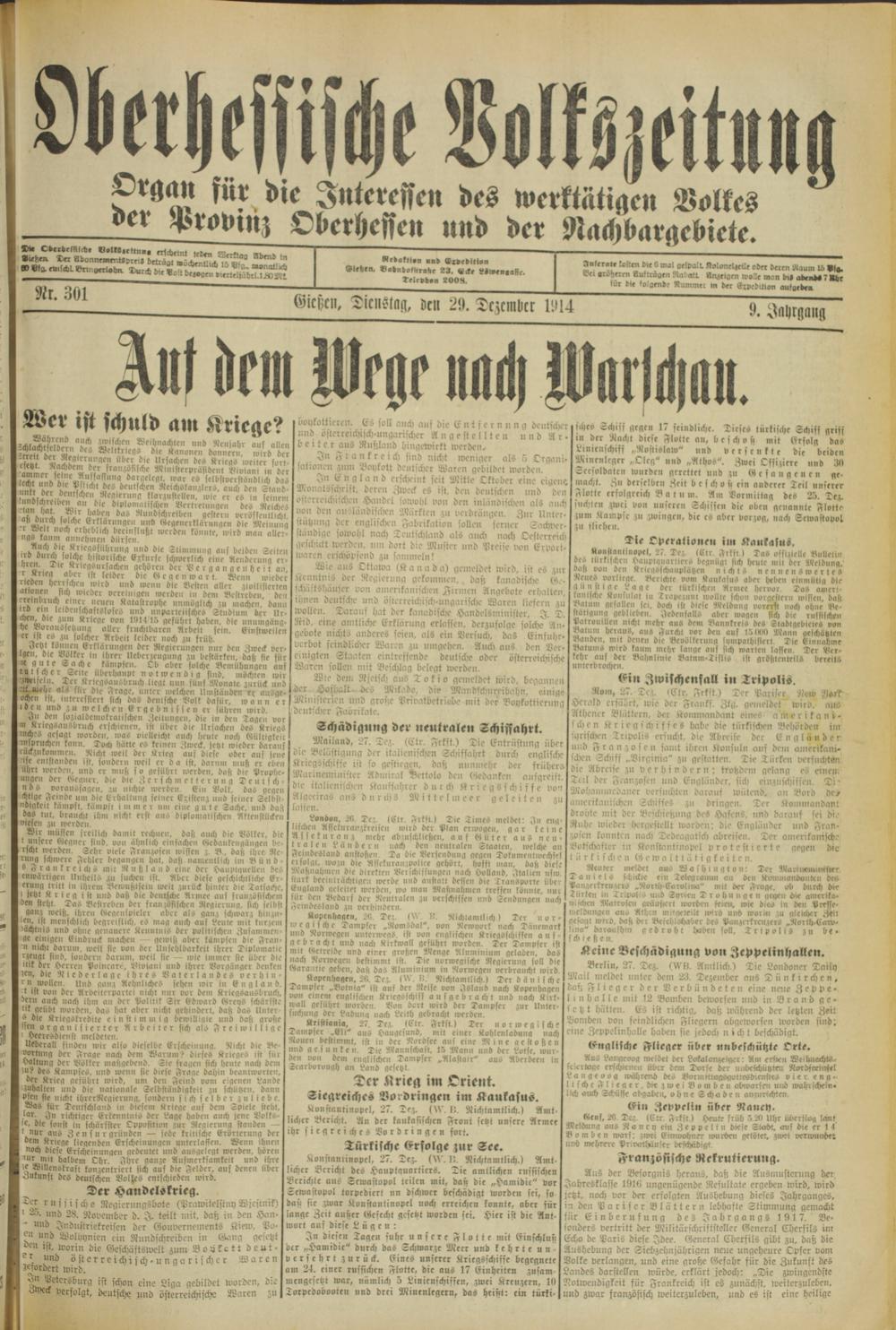 Oberhessische Volkszeitung. 1914-1923
