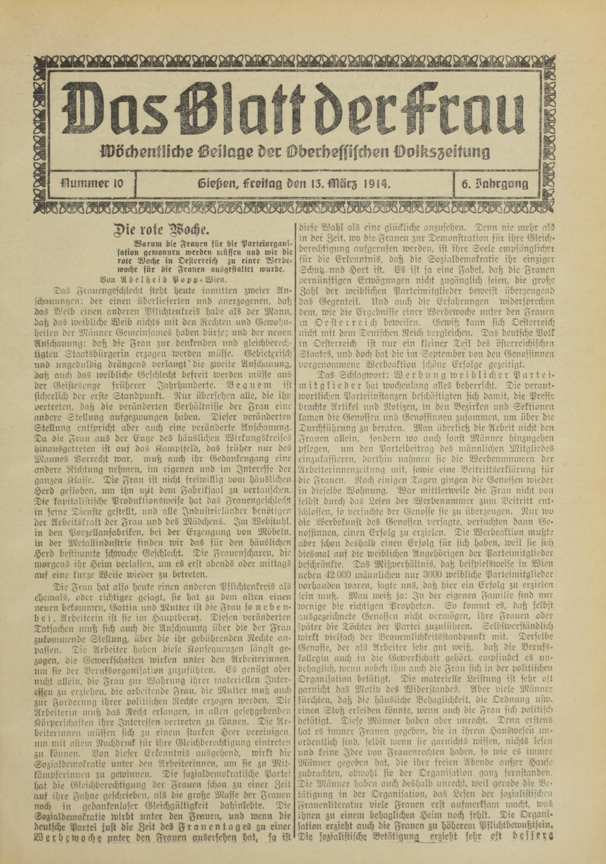 Das Blatt der Frau. 1914-1914