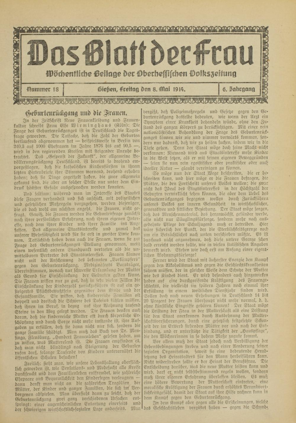Das Blatt der Frau. 1914-1914