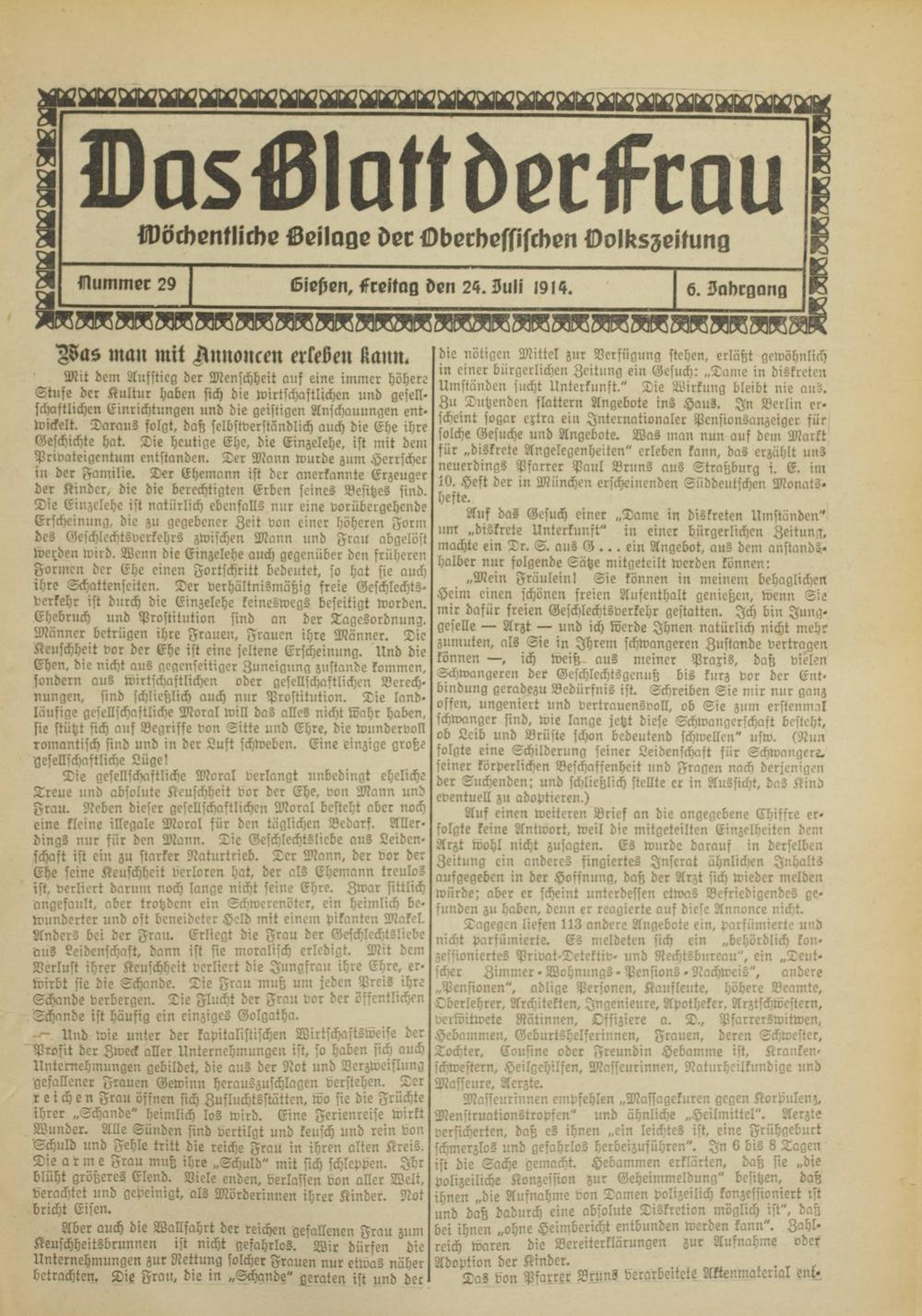 Das Blatt der Frau. 1914-1914