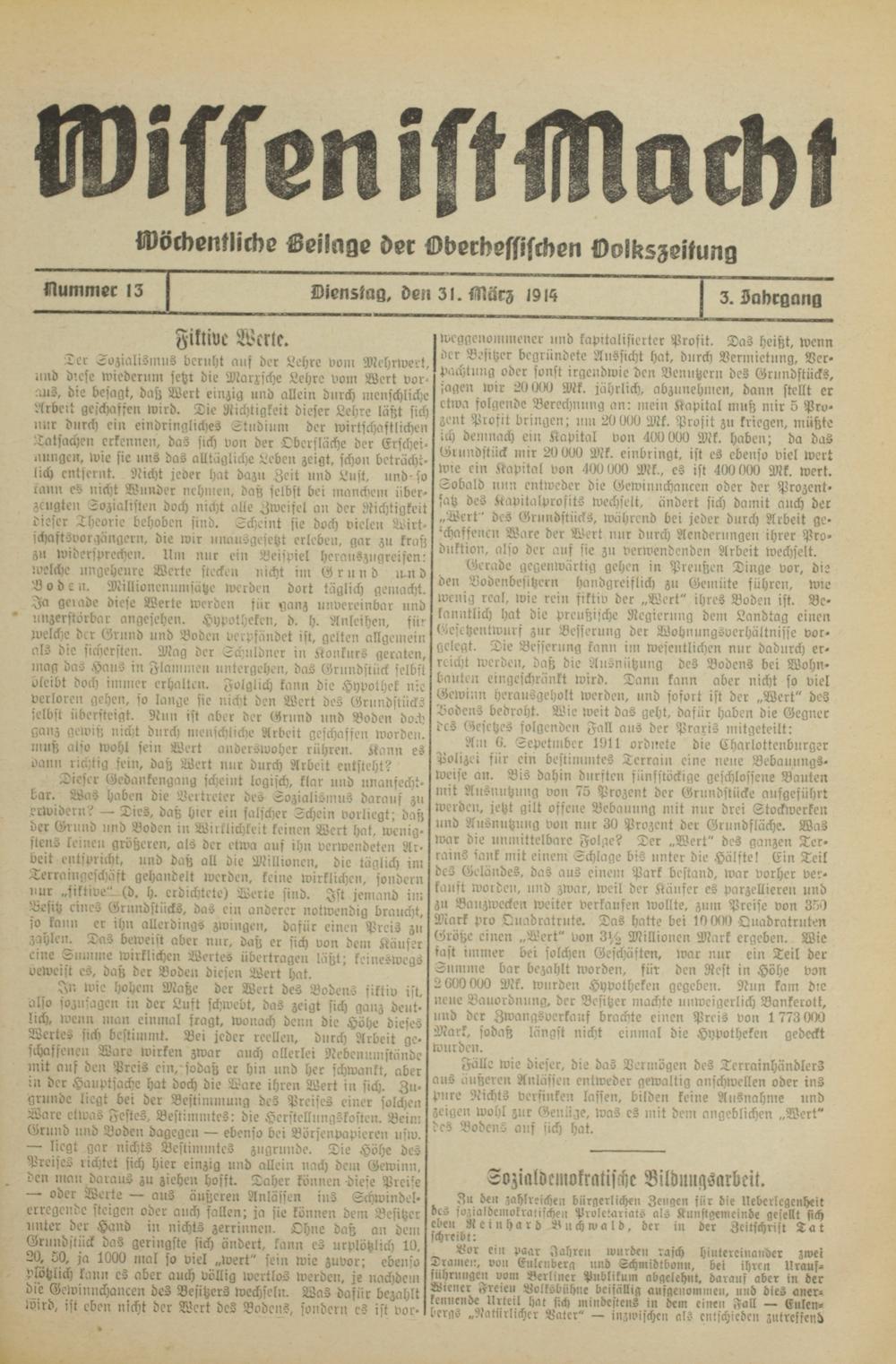 Wissen ist Macht. 1914-1914