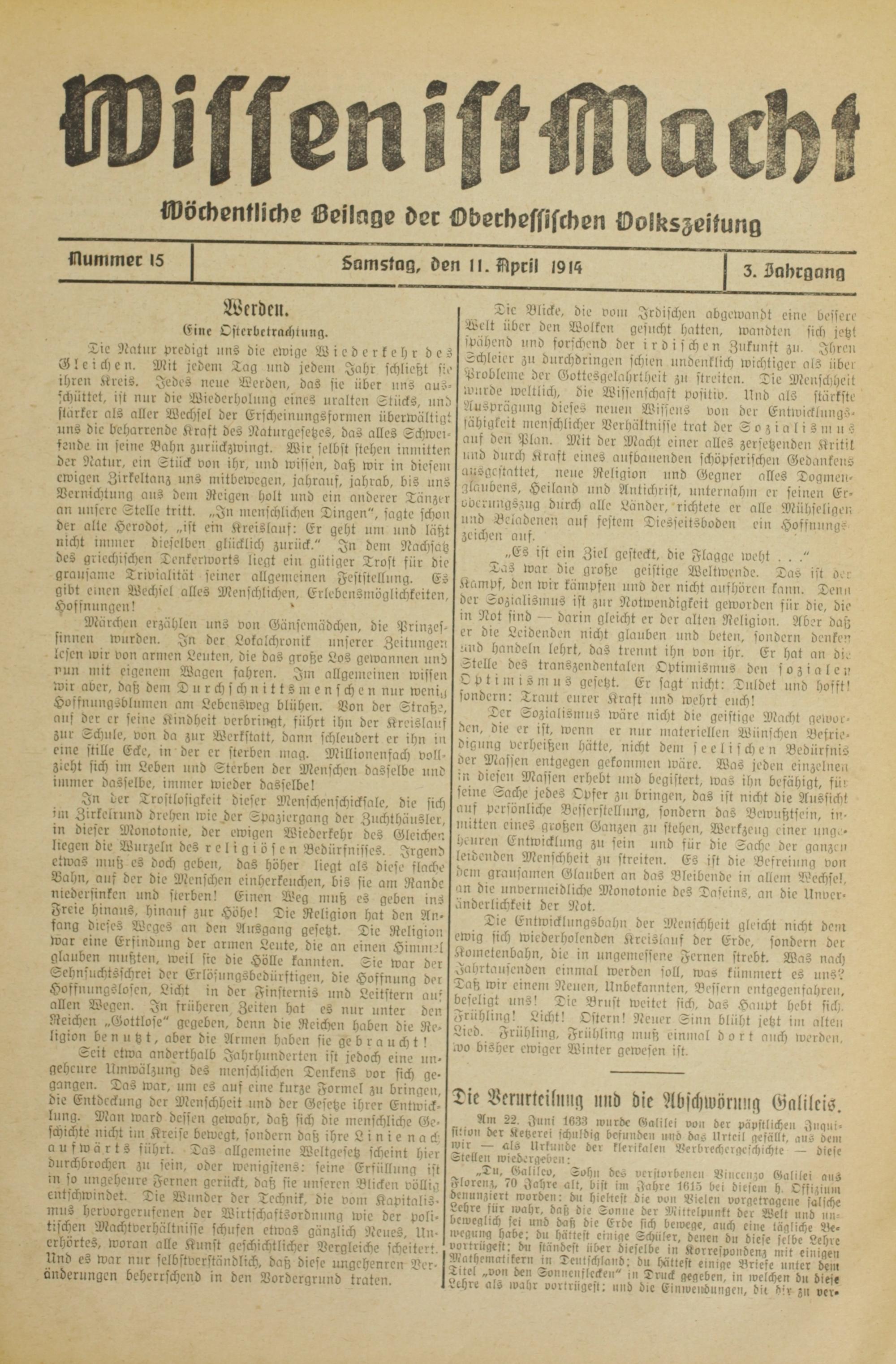Wissen ist Macht. 1914-1914