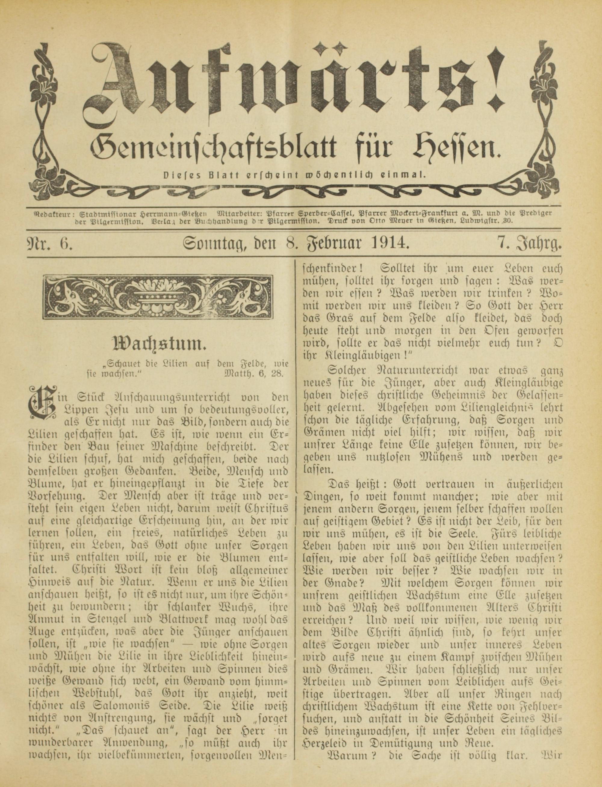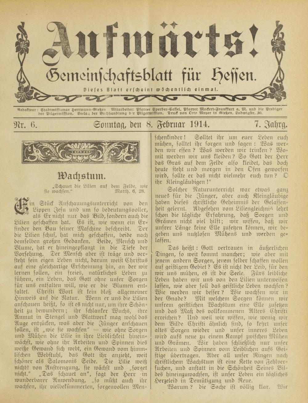 Aufwärts!. 1913-1918