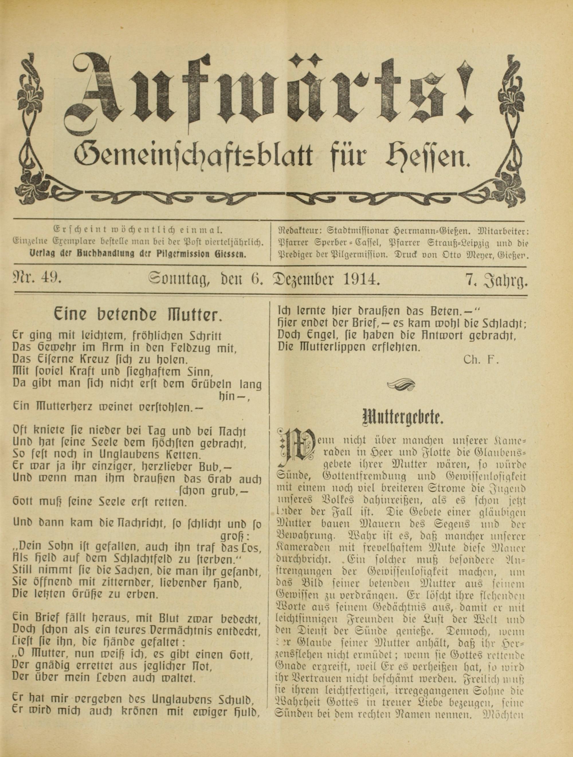 Aufwärts!. 1913-1918