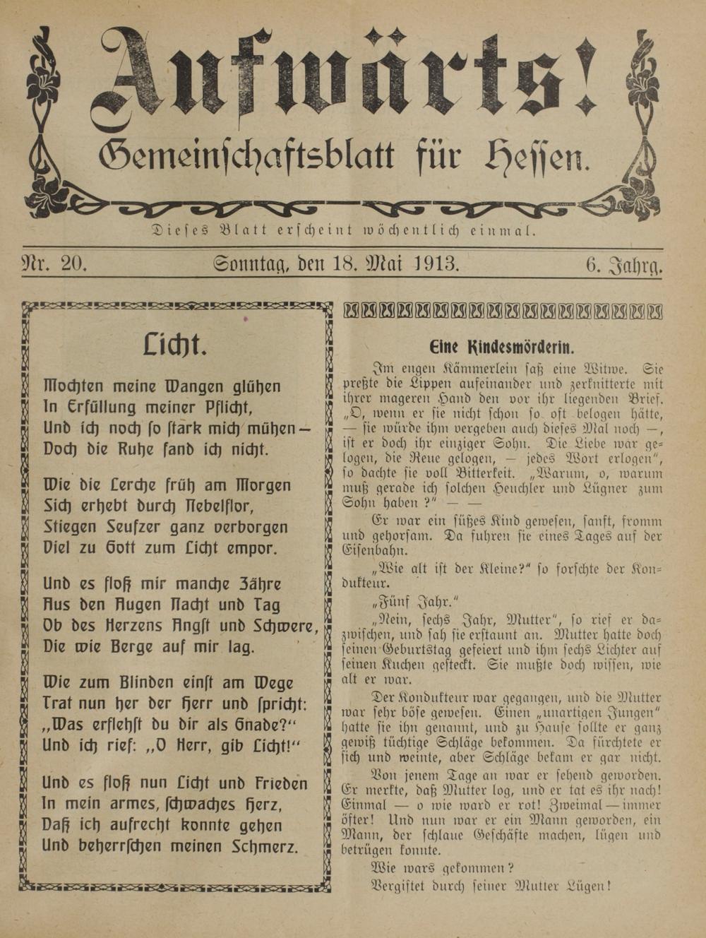 Aufwärts!. 1913-1918