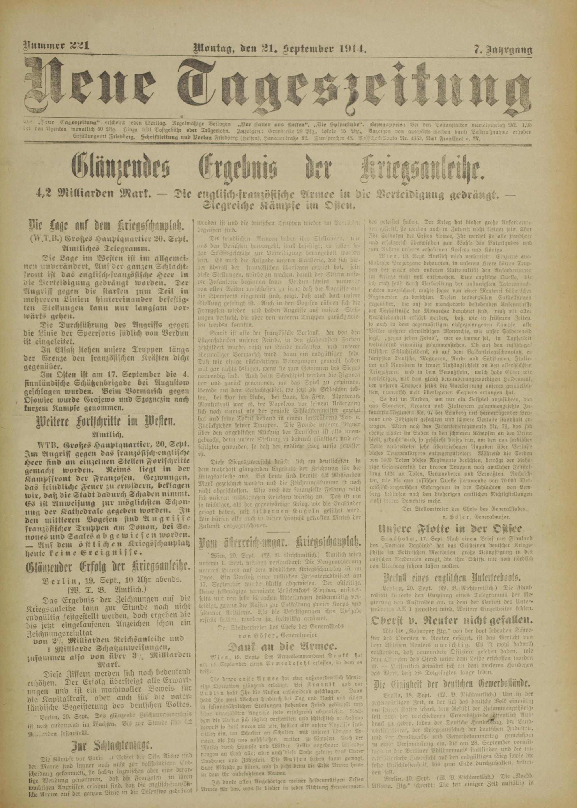 Neue Tageszeitung. 1914-1914