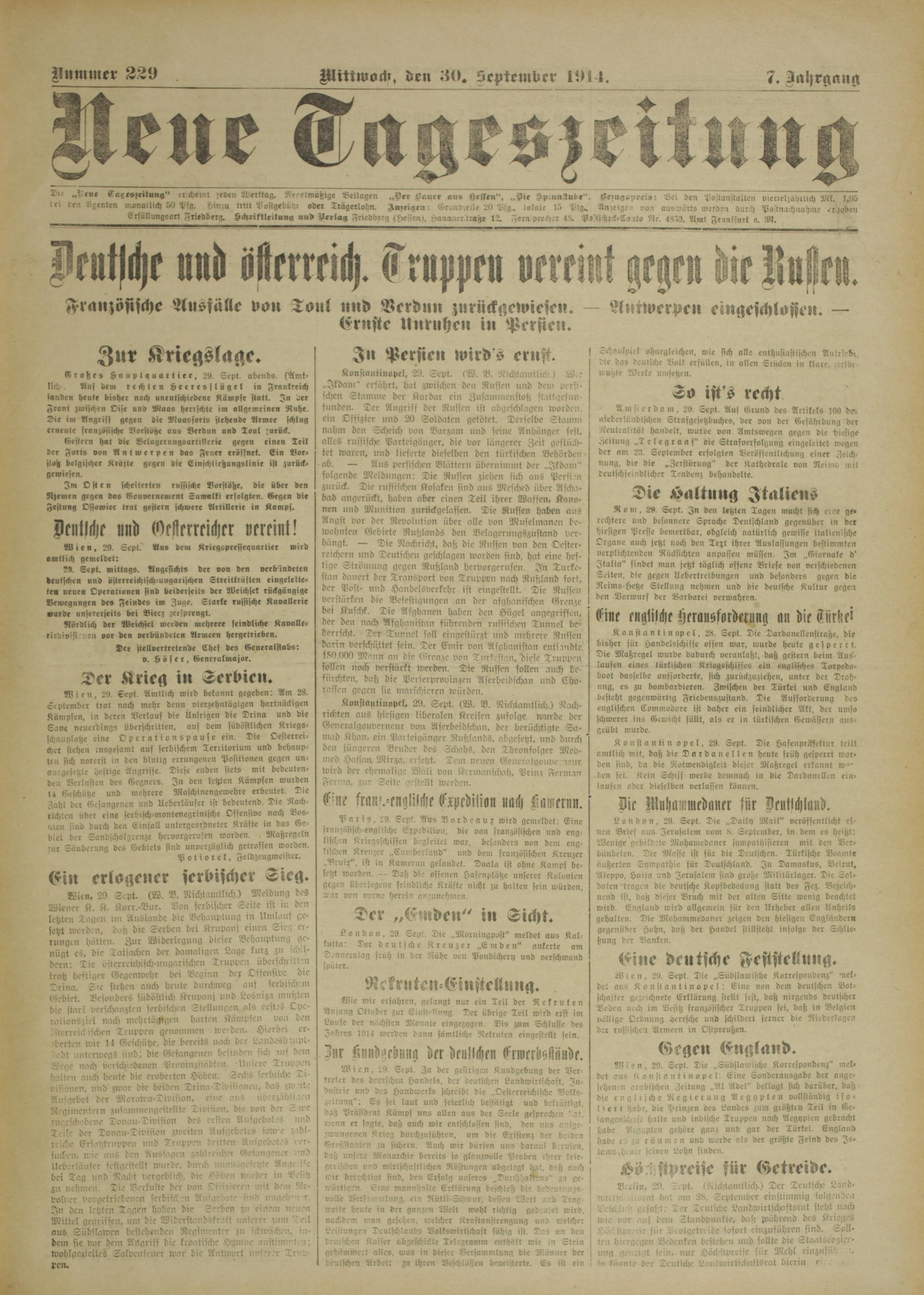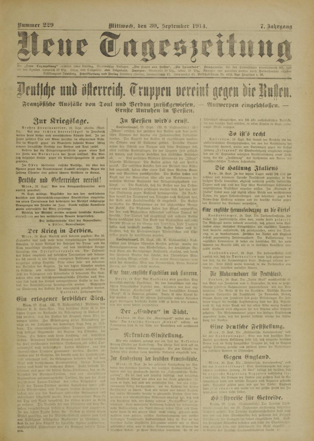 Neue Tageszeitung. 1914-1914