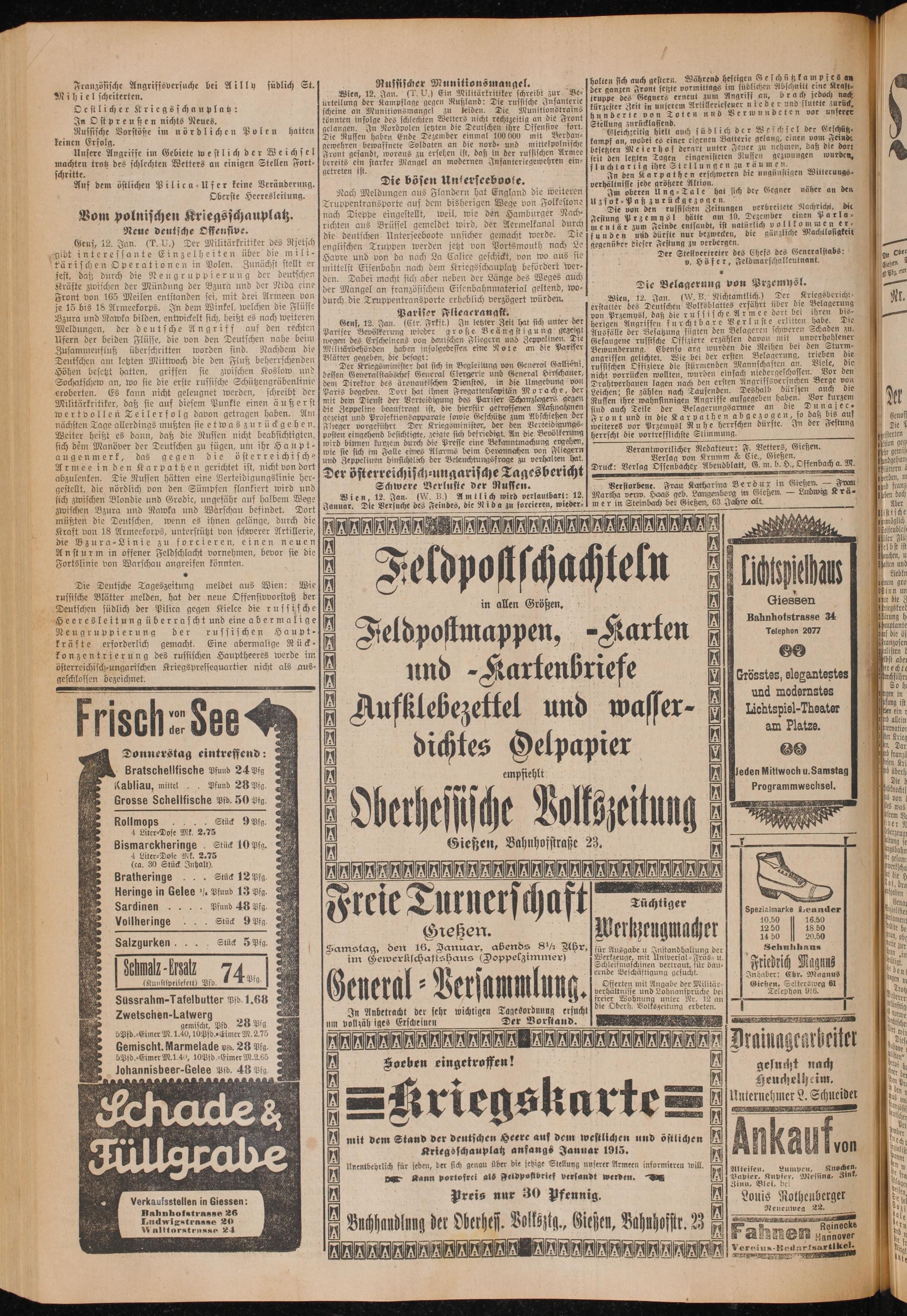 Oberhessische Volkszeitung. 1914-1923