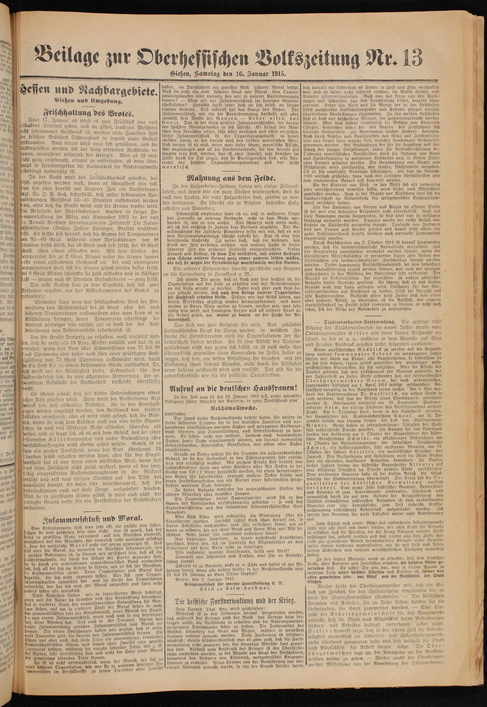Oberhessische Volkszeitung. 1914-1923