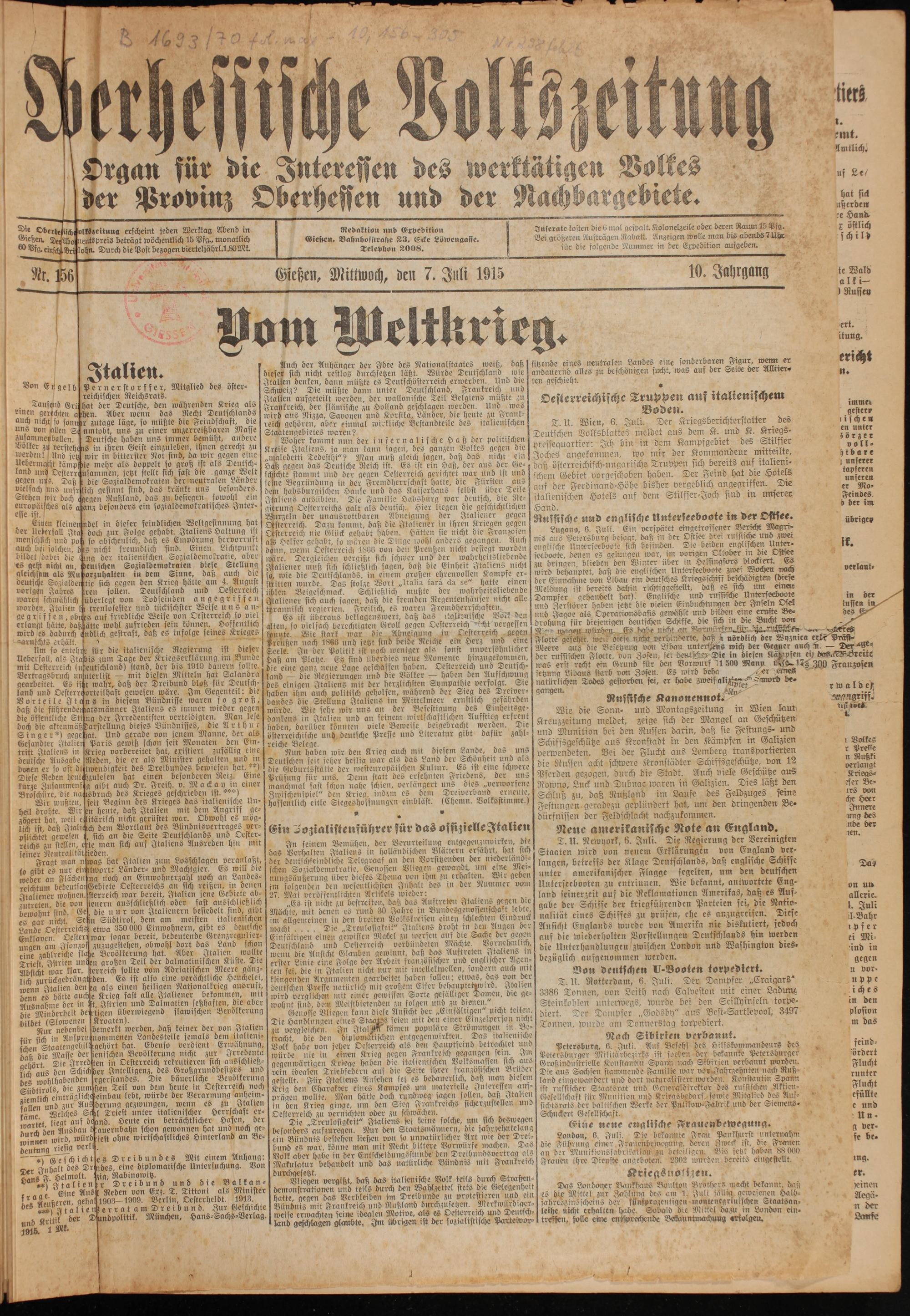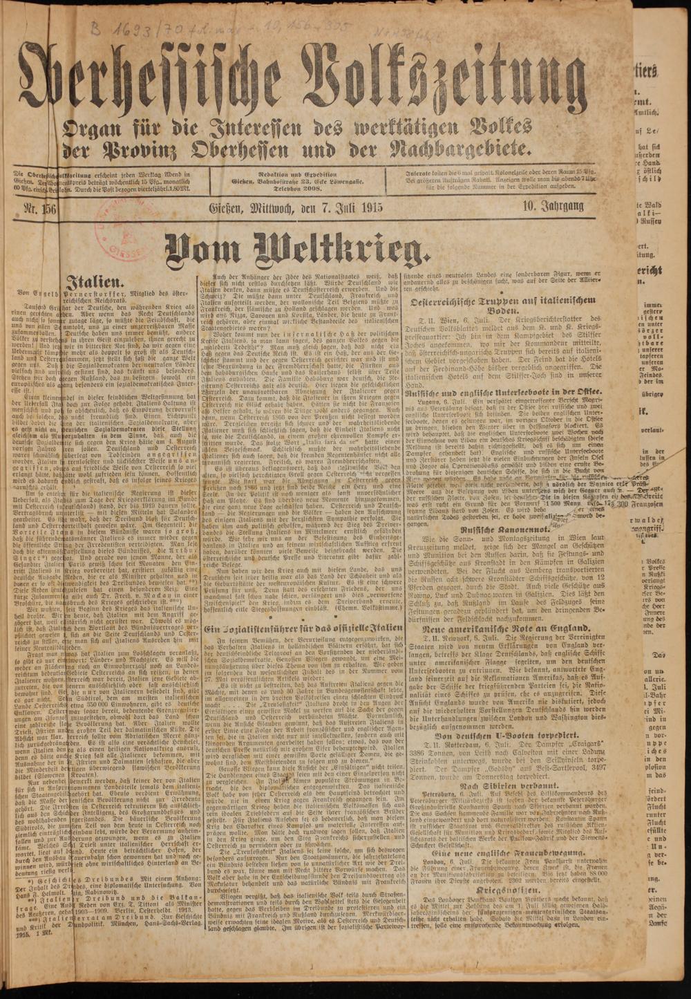 Oberhessische Volkszeitung. 1914-1923