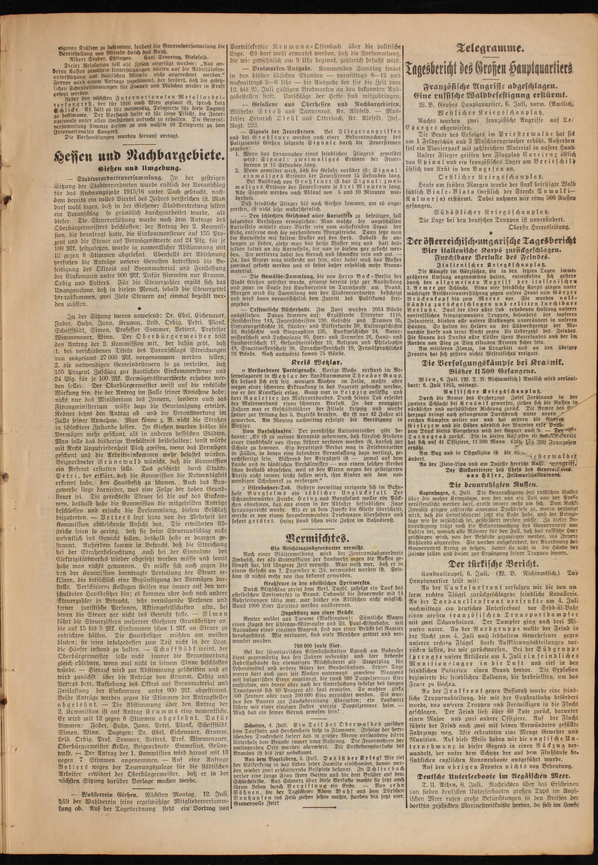 Oberhessische Volkszeitung. 1914-1923