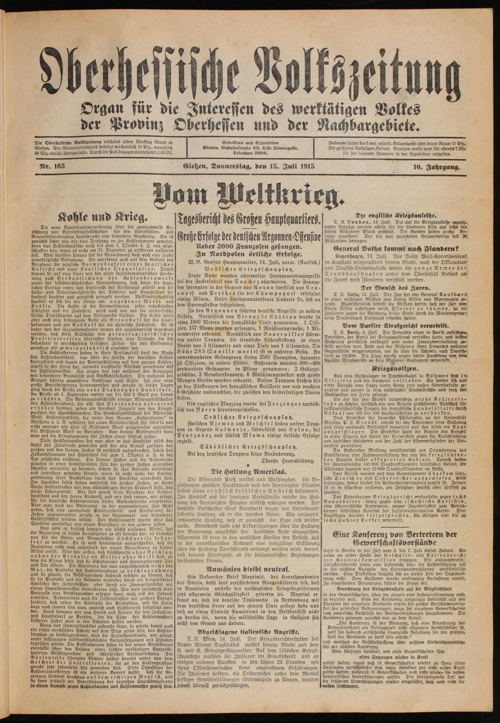 Oberhessische Volkszeitung. 1914-1923