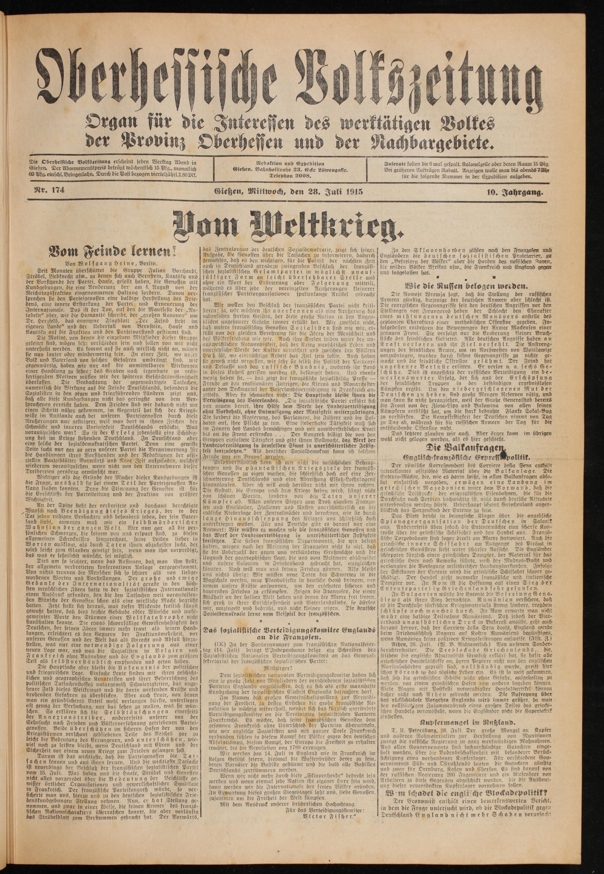 Oberhessische Volkszeitung. 1914-1923