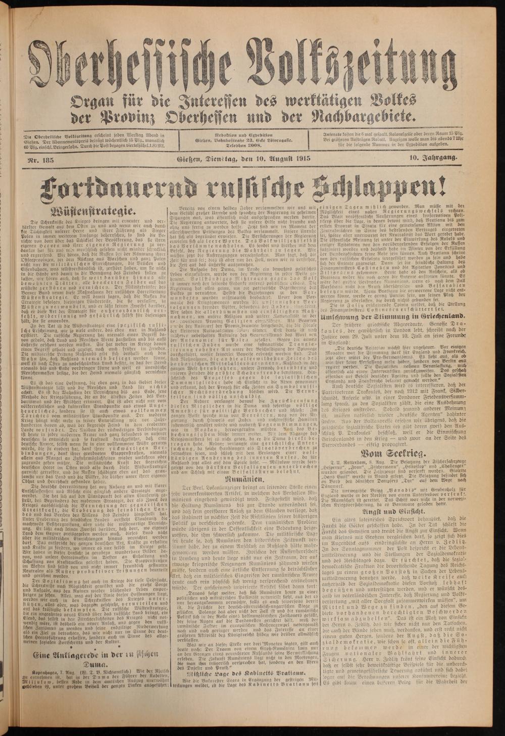Oberhessische Volkszeitung. 1914-1923