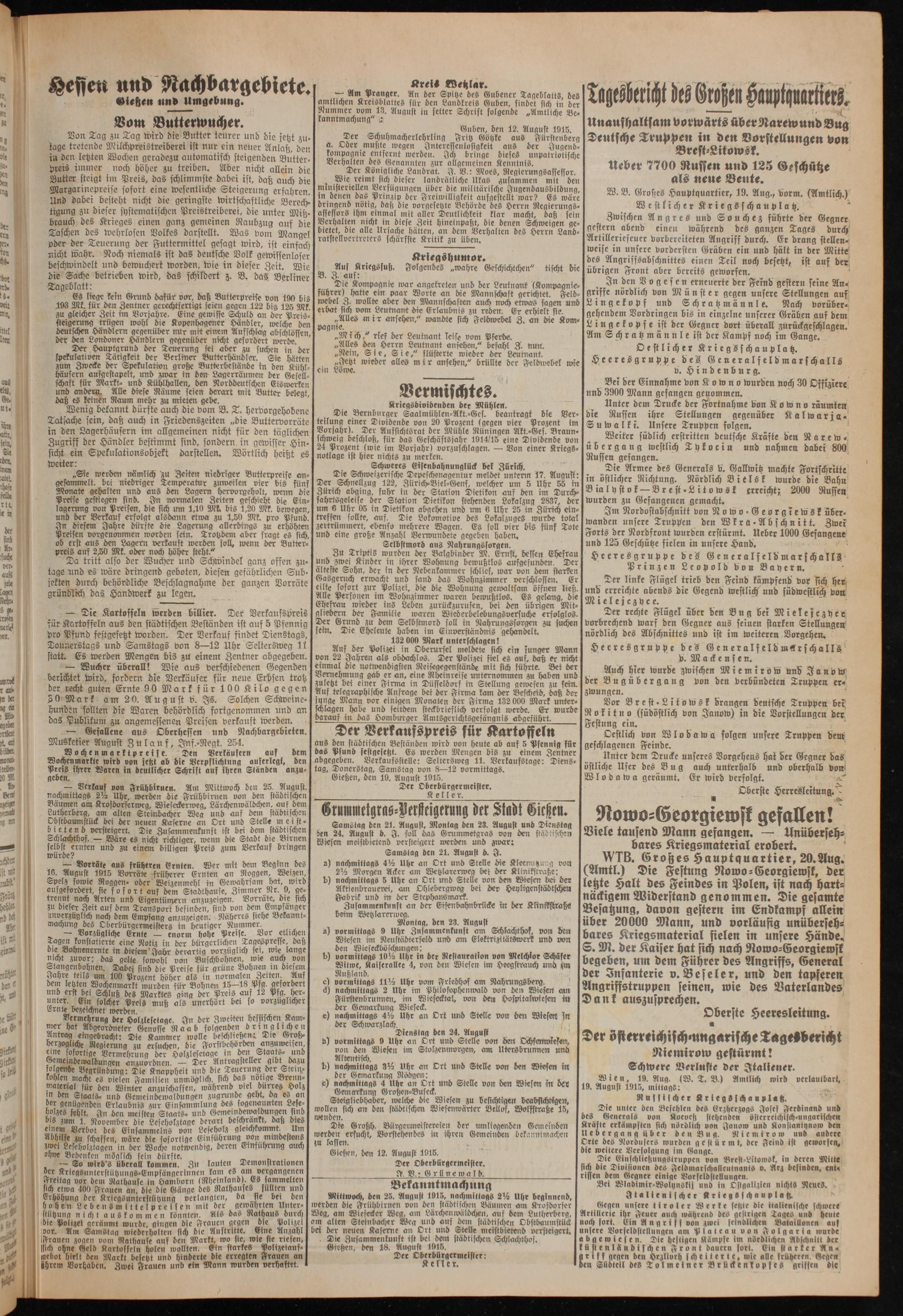 Oberhessische Volkszeitung. 1914-1923