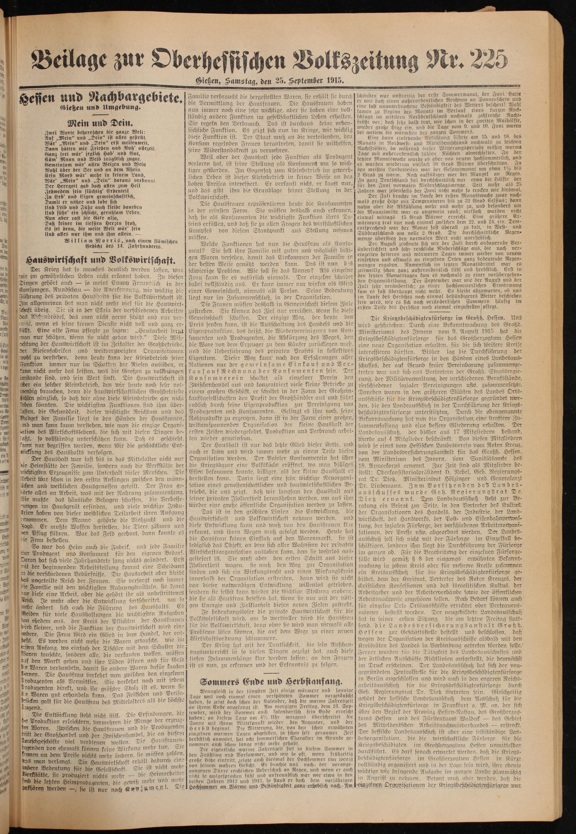 Oberhessische Volkszeitung. 1914-1923