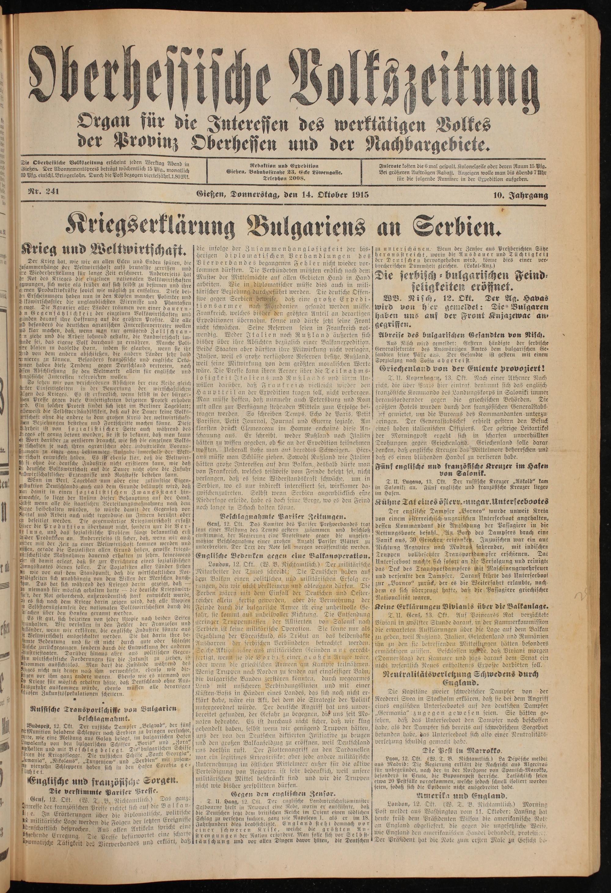 Oberhessische Volkszeitung. 1914-1923