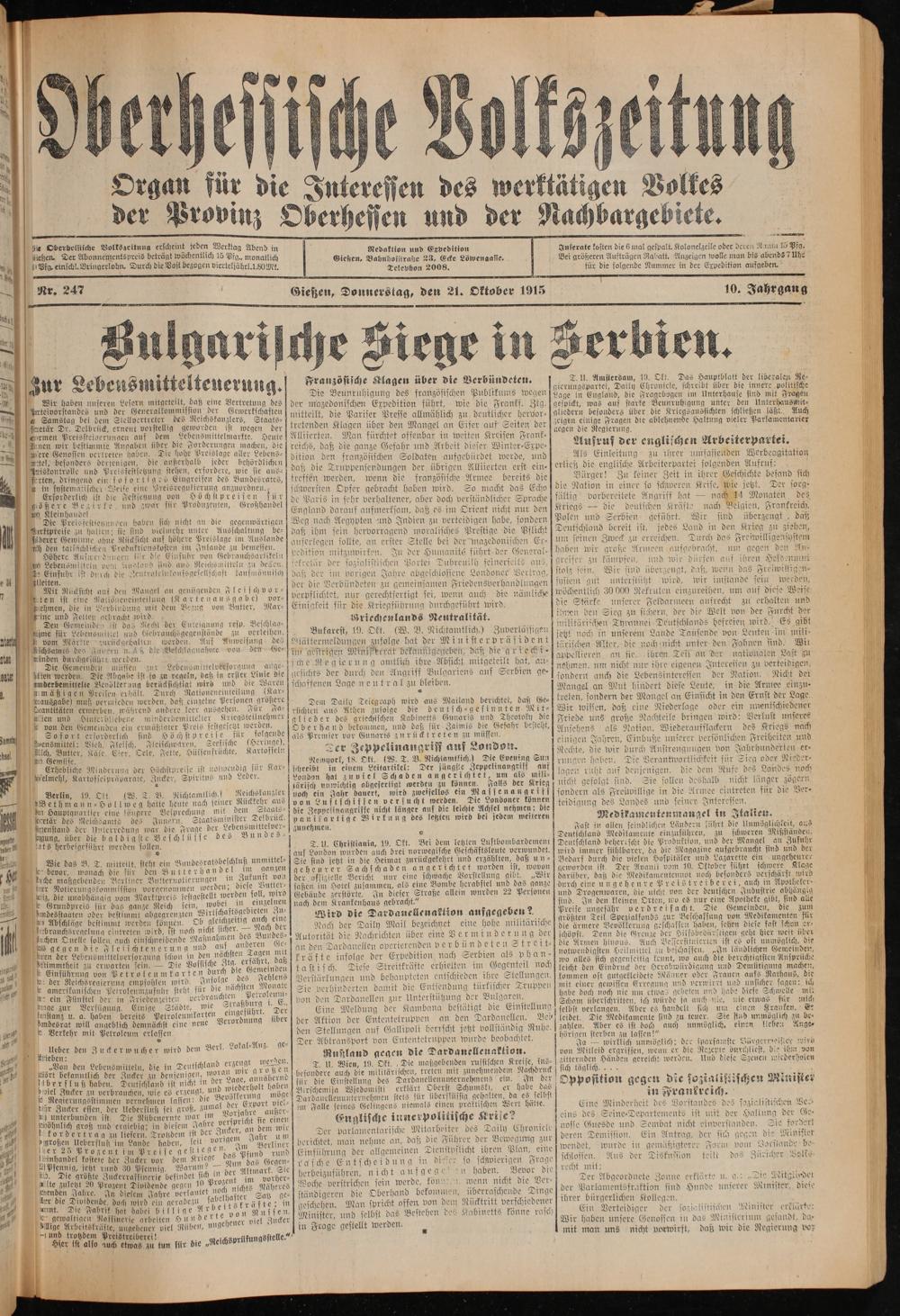 Oberhessische Volkszeitung. 1914-1923