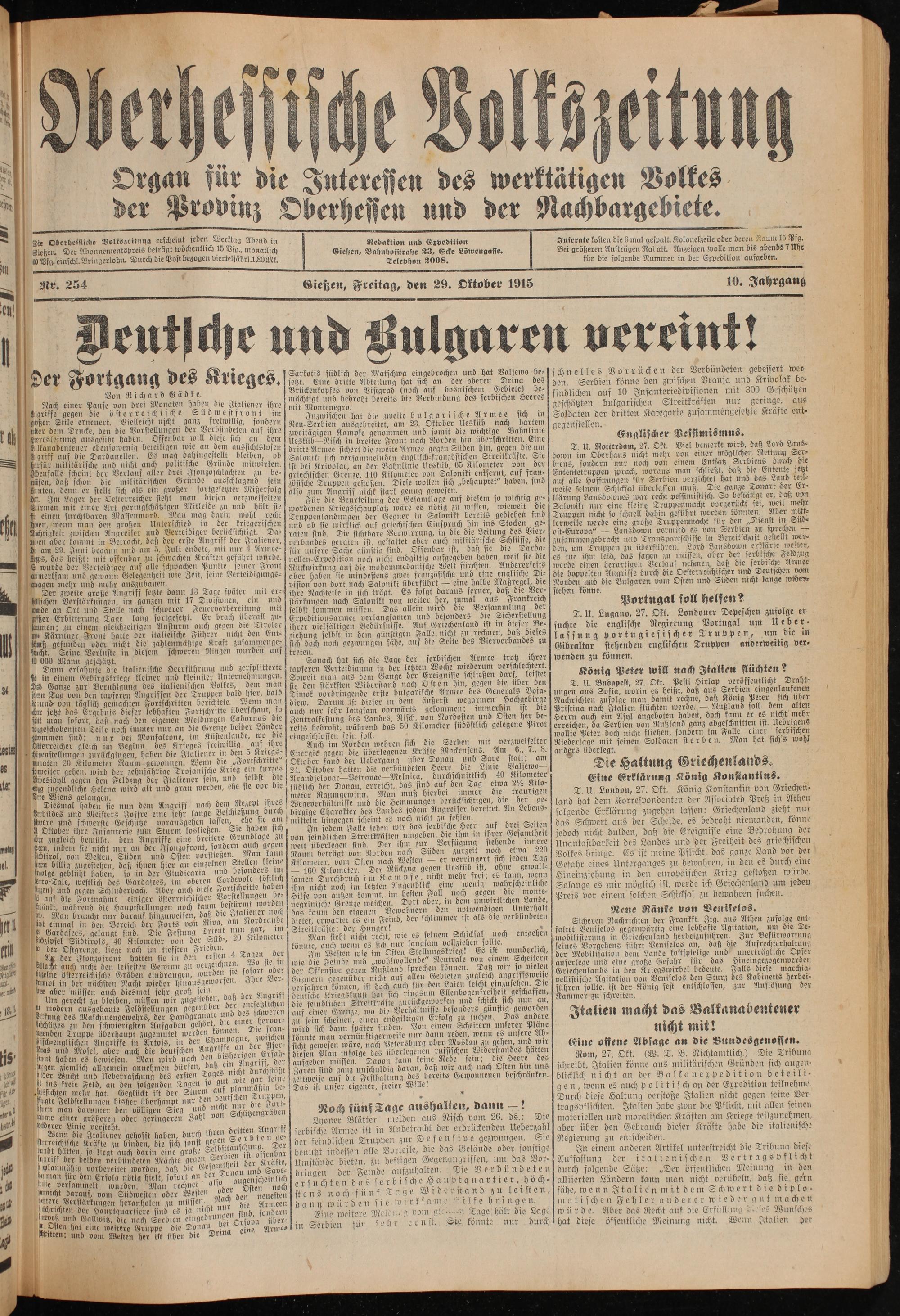 Oberhessische Volkszeitung. 1914-1923