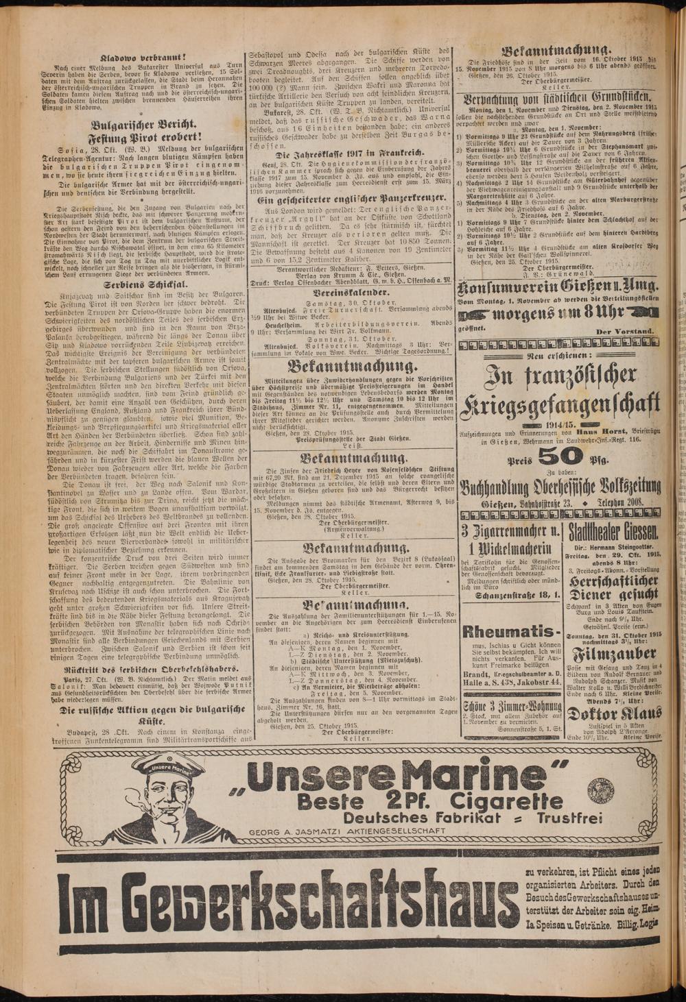 Oberhessische Volkszeitung. 1914-1923