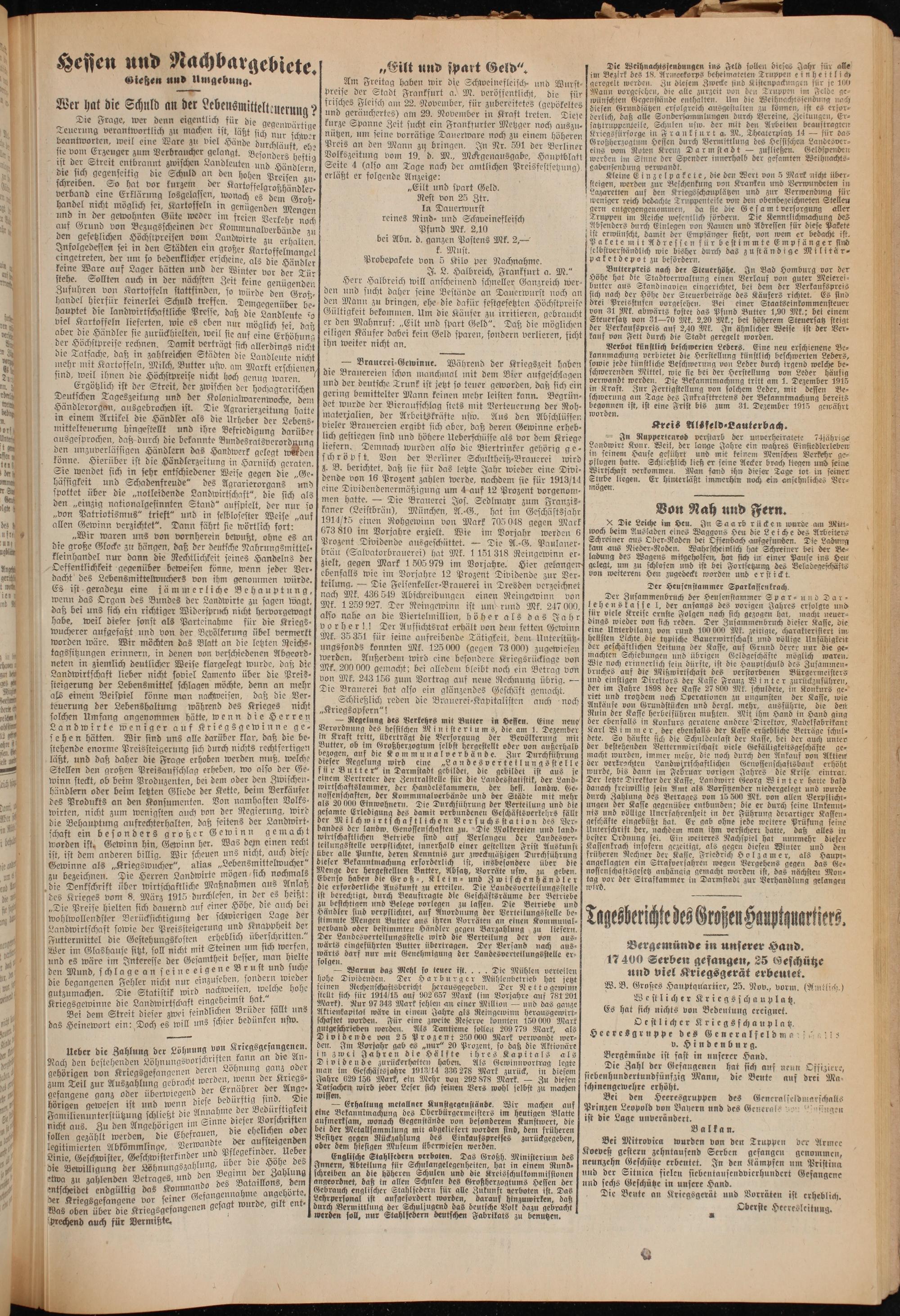 Oberhessische Volkszeitung. 1914-1923