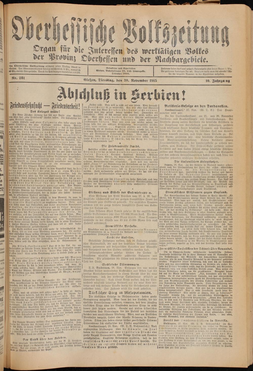 Oberhessische Volkszeitung. 1914-1923