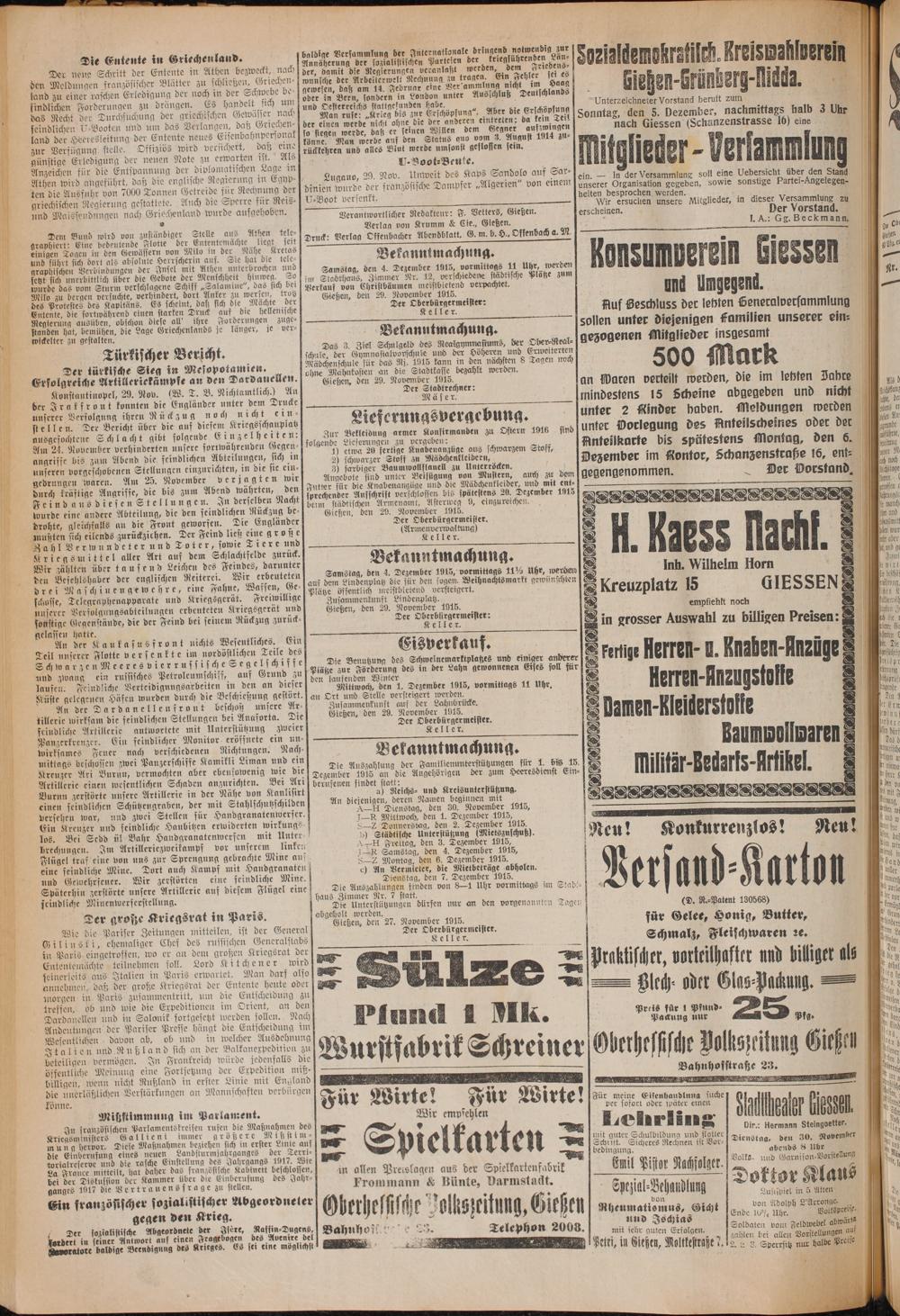 Oberhessische Volkszeitung. 1914-1923