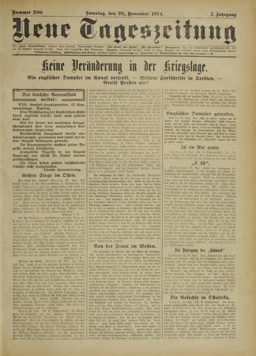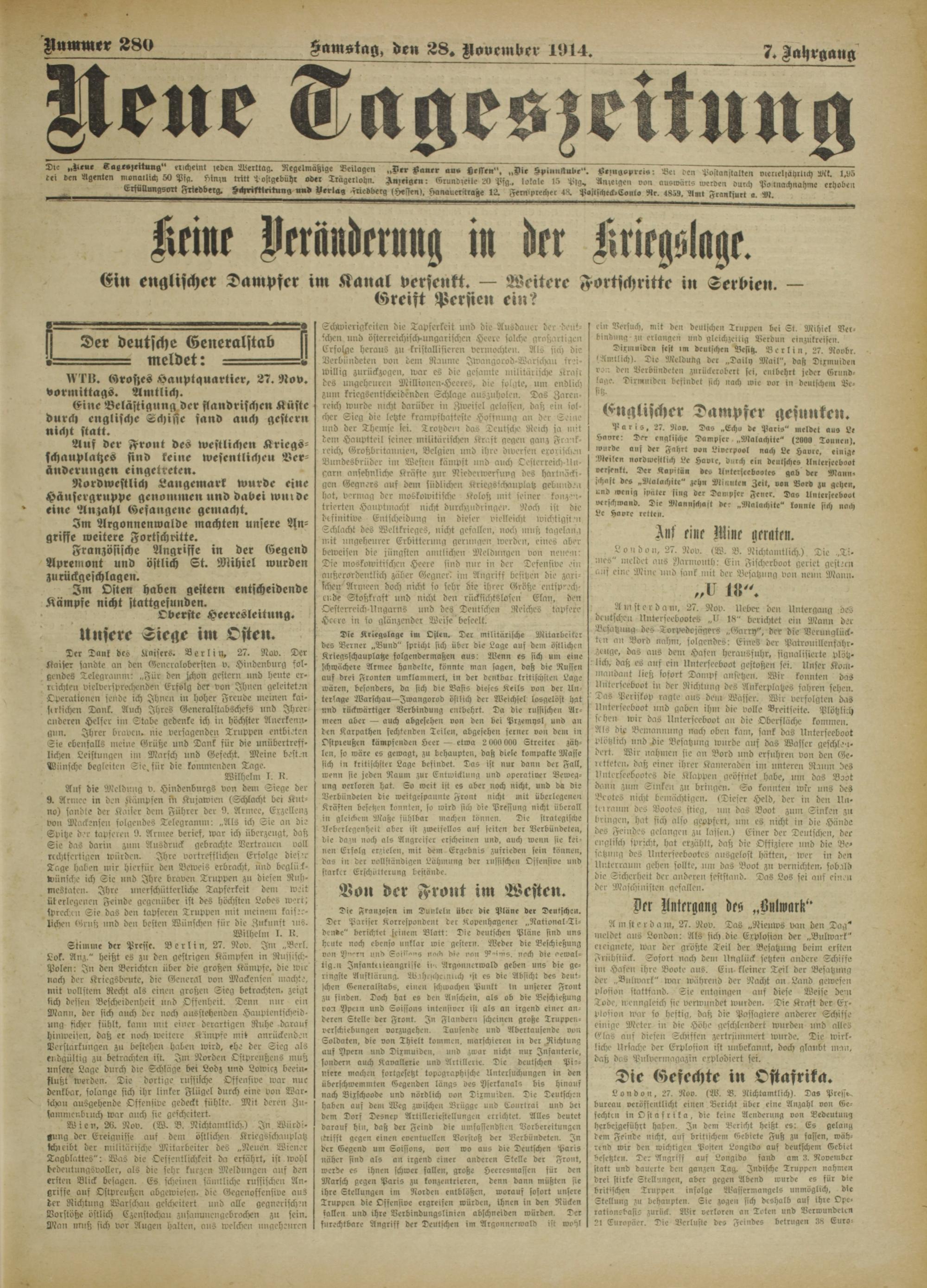Neue Tageszeitung. 1914-1914