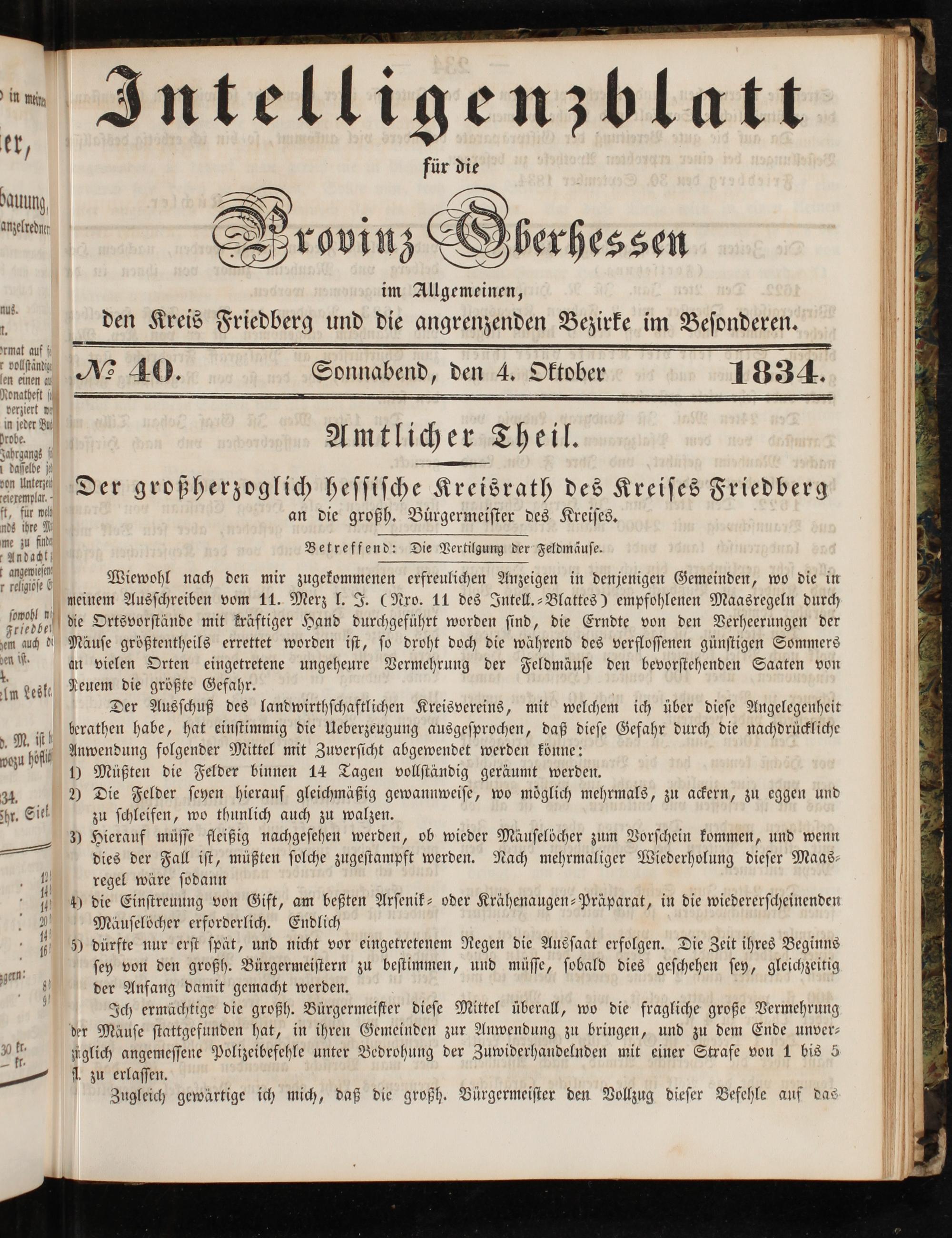 Intelligenzblatt für die Provinz Oberhessen. 1834-1834