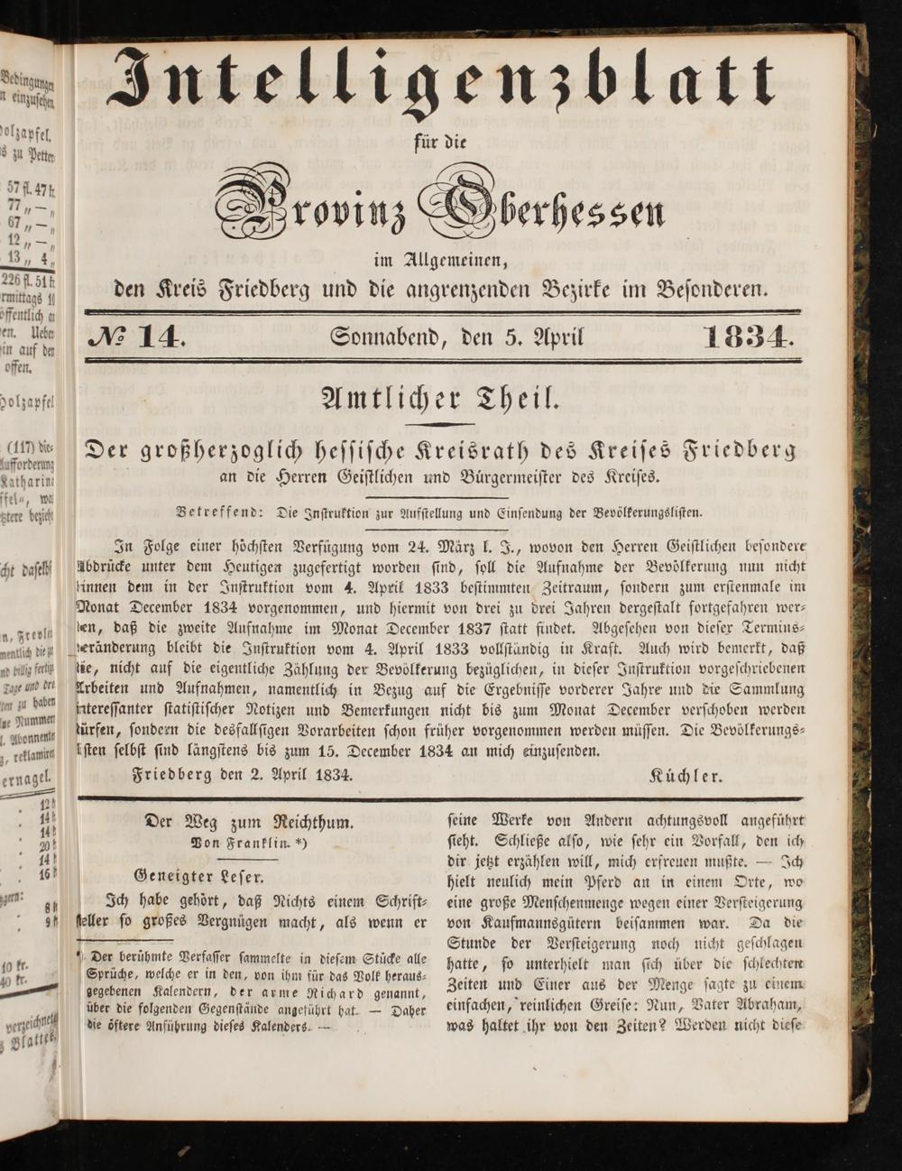 Intelligenzblatt für die Provinz Oberhessen. 1834-1834