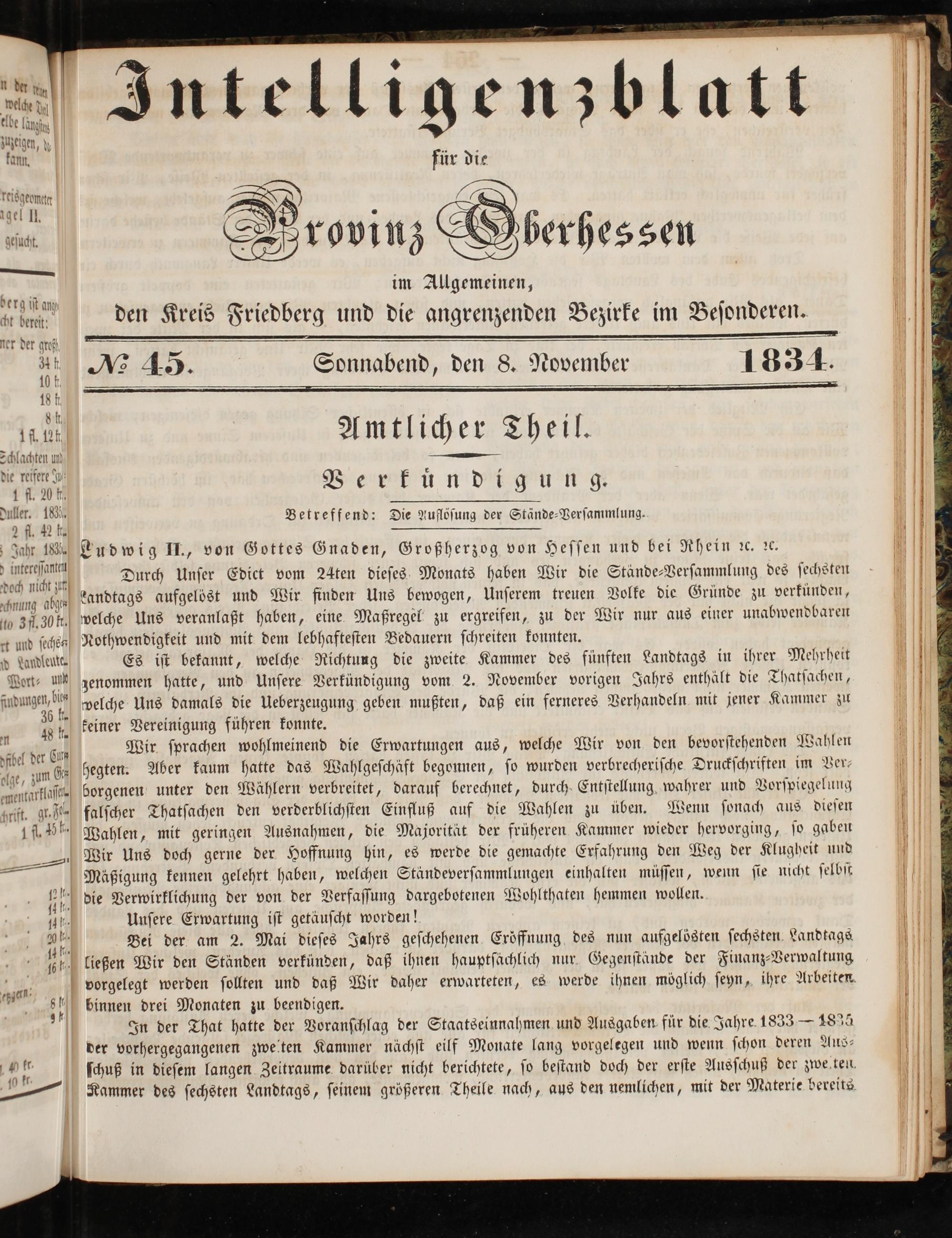 Intelligenzblatt für die Provinz Oberhessen. 1834-1834