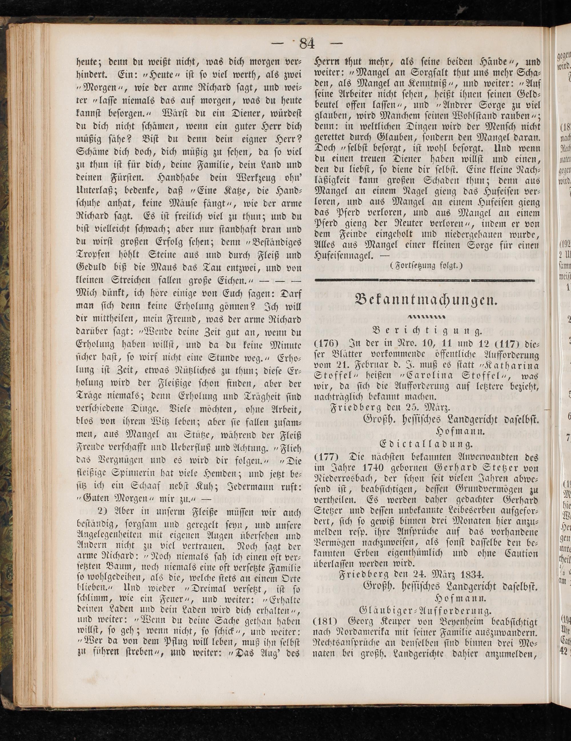 Intelligenzblatt für die Provinz Oberhessen. 1834-1834