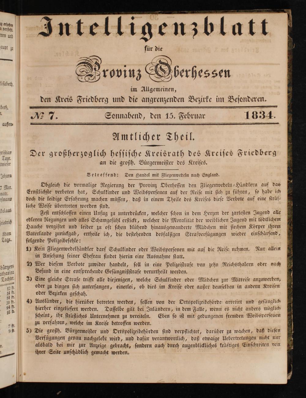 Intelligenzblatt für die Provinz Oberhessen. 1834-1834