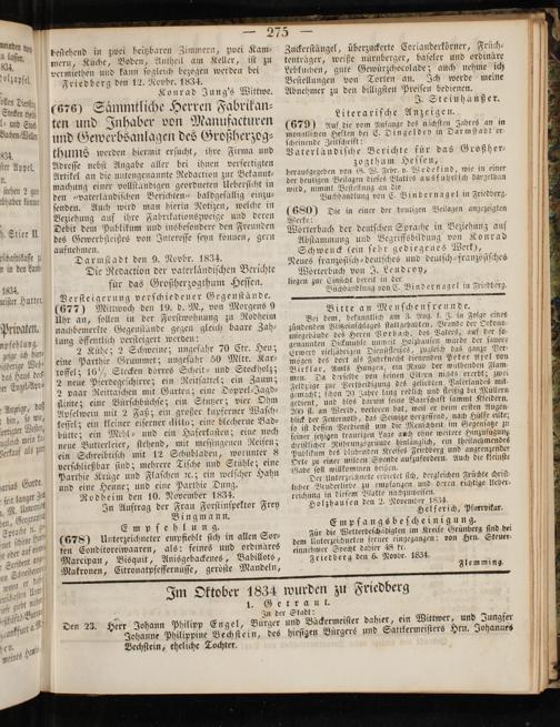 Intelligenzblatt für die Provinz Oberhessen. 1834-1834