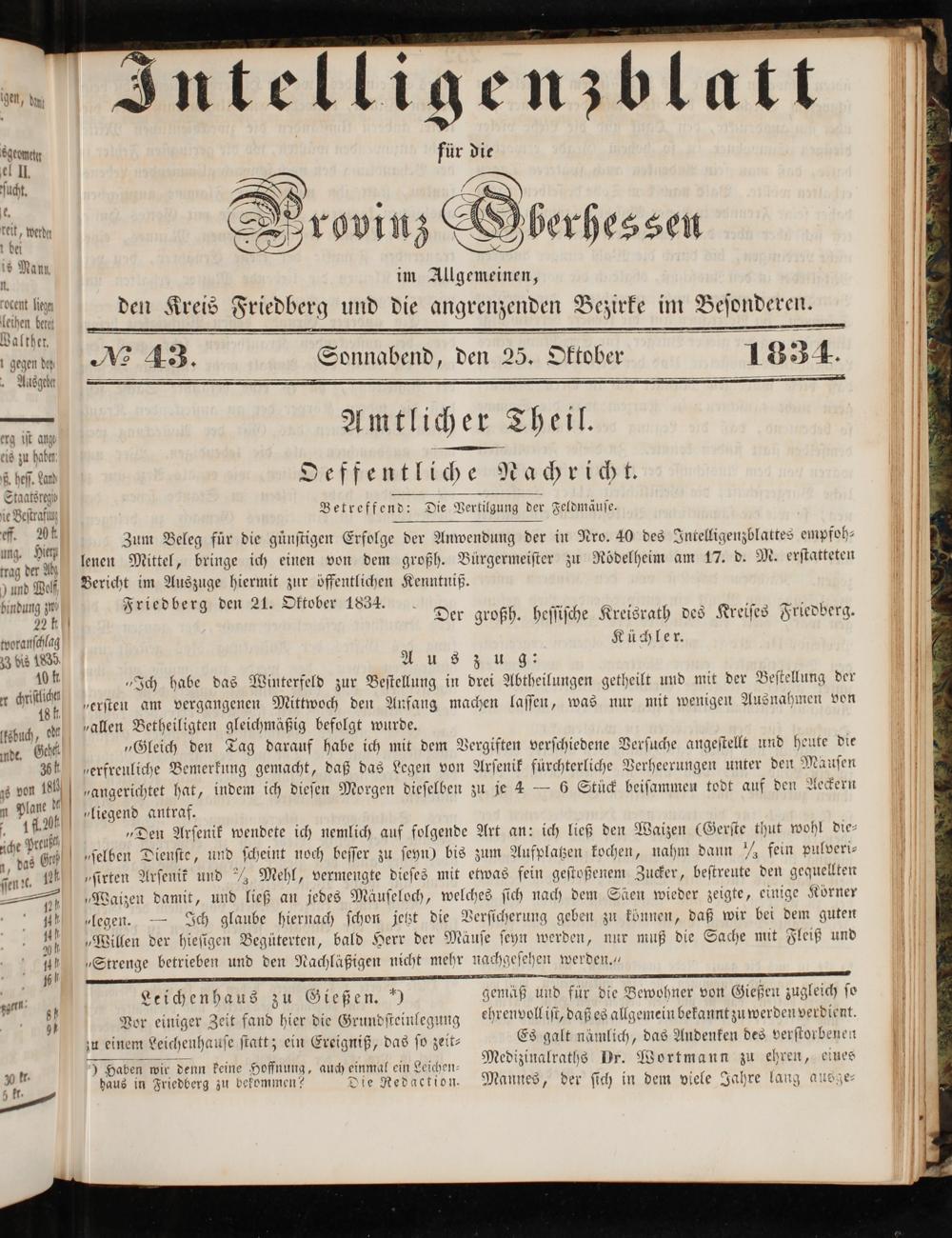 Intelligenzblatt für die Provinz Oberhessen. 1834-1834